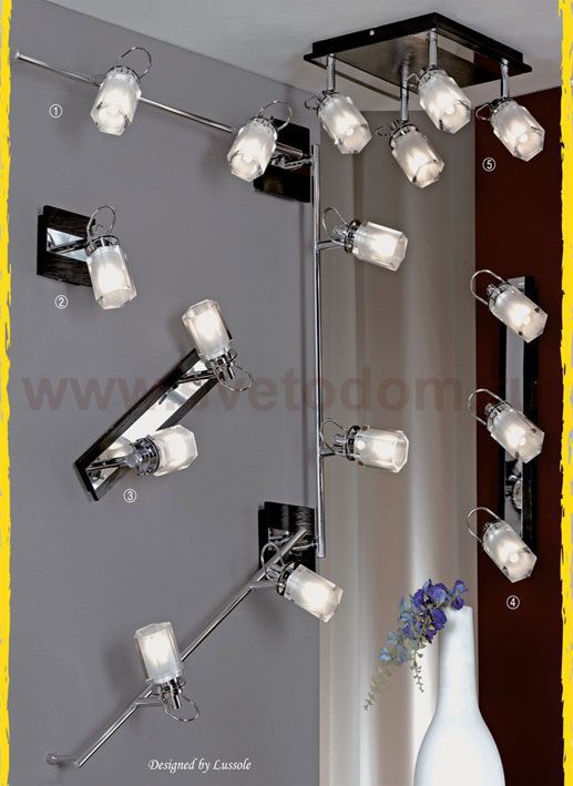 Этот светильник благодаря четырем плафонам, можно использовать не только на стенах, но и в качестве потолочной люстры. Он подойдет в любое помещение, и с помощью поворота осей можно осветить большое количество различных зон, а также сделать свет более рассеянным, направив его в потолок, или более направленным, опустив плафоны вертикально вниз. Современные цвета хром, белый и черный и простая конструкция светильника будут идеальным дополнением к интерьеру в стиле модерн или хай-тек. |