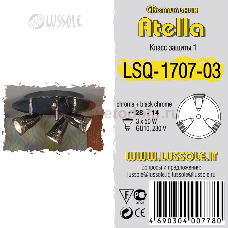 Светильники-споты – это оригинальные изделия с современным дизайном. Они позволяют не ограничивать свою фантазию при выборе освещения для интерьера. Такие модели обеспечивают достаточно качественный свет. Благодаря компактным размерам Вы можете использовать несколько спотов для одного помещения. Интернет-магазин «Светодом» предлагает необычный светильник-спот Lussole LSQ-1707-03 по привлекательной цене. Эта модель станет отличным дополнением к люстре, выполненной в том же стиле. Перед оформлением заказа изучите характеристики изделия. Купить светильник-спот Lussole LSQ-1707-03 в нашем онлайн-магазине Вы можете либо с помощью формы на сайте, либо по указанным выше телефонам. Обратите внимание, что у нас склады не только в Москве и Екатеринбурге, но и других городах России. |