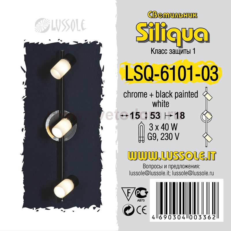 63 Отзывы Светильник поворотный спот Lussole LSQ-6101-03 SILIQUAПока нет отзывов об этом товаре, напишите и он обязательно появится после модерации! Оставить свой отзывПохожие товары Другие товары магазина Фото