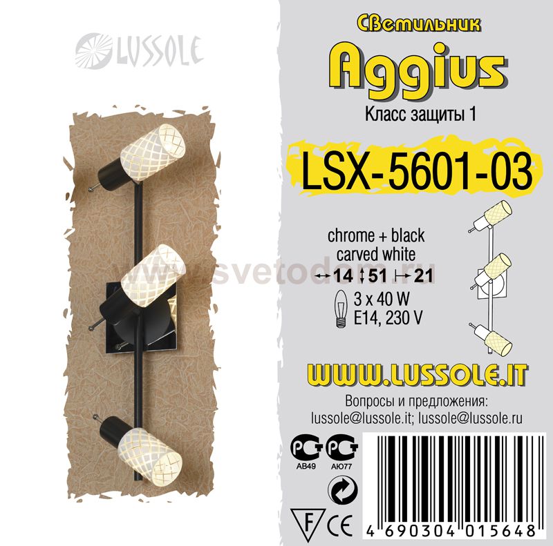 62 Отзывы Светильник Lussole LSX-5601-03 AggiusПока нет отзывов об этом товаре, напишите и он обязательно появится после модерации! Оставить свой отзывПохожие товары Другие товары магазина Фото
