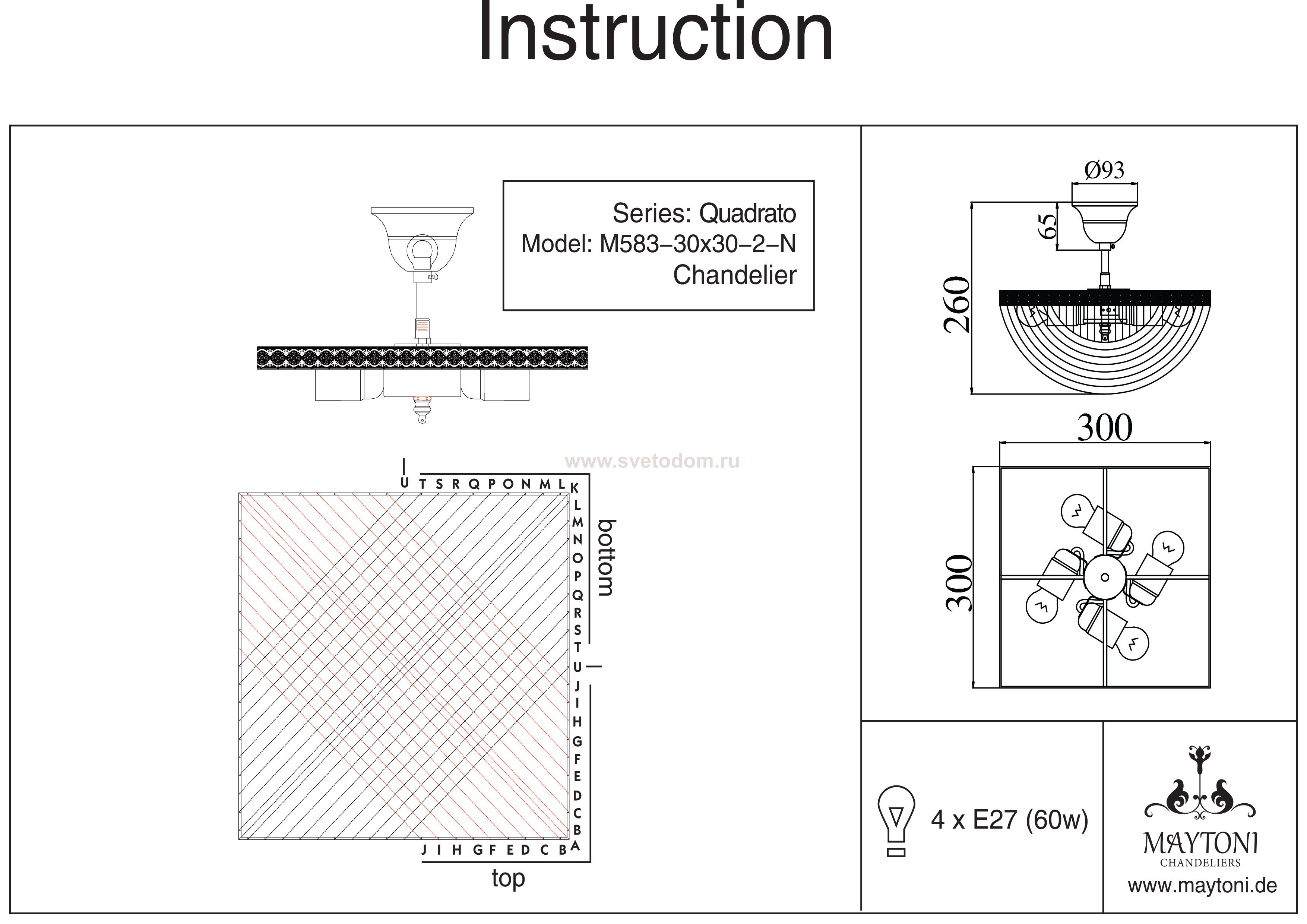 Изображенная на фото хрустальная люстра выполнена из латуни никелевого цвета. Хрустальная люстра от компании Maytoni идеально впишется в интерьер вашей спальни. Также, при создании этой люстры инженеры использовали патроны повышенной мощности. Немецкой фирмой Майтони предусмотрено использования ламп с цоколем Е27 и мощностью до 60 Ватт, которые не входят в стоимость товара. Хрустальная люстра Maytoni Diamant Crystal M583-30x30-2-N имеет возможность подключения двухклавишного выключателя. Купить это изделие, которое станет не только источником света в вашем помещении, но и частью его декора, можно на нашем сайте по приятной цене. |
