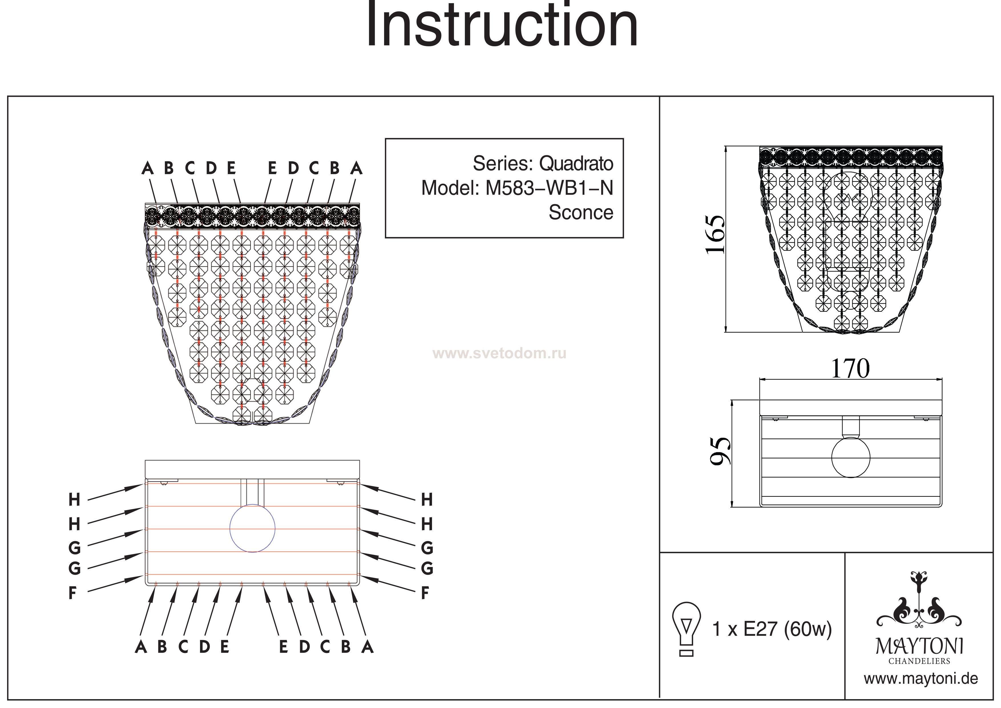 Великолепный дизайн данного хрустального бра немецкой фирмы Майтони можно посмотреть на фото, взглянув на которое, сразу читается классический стиль светильника. Арматура изделия окрашена в цвет никеля, что добавляет ему немного сдержанности. Интересен не только внешний облик бра, но и стоимость, по которой его можно купить. Бра Maytoni M583-WB1-N крепится к стене на пластине и имеет следующие размеры: 210 миллиметров в высоту и 180 миллиметров в ширину. В светильник компании Maytoni устанавливают одну лампу мощностью 60 Ватт с цоколем Е27. Для такого стильного бра указанная цена вполне приемлема. |