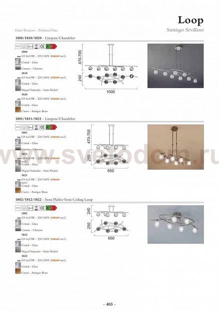 Коллекция LOOP, спроектированная Сантьяго Севиллано, заключает в себе в себе элегантность и эффективность. Скульптурные стеклянные сферы, украшенные опаловыми линиями, завершаются серией металлических рам с переплетающимися плавными изгибами. Комплиментарное сочетание металла и стекла создает гармонию композиции. Замысловатые тонкие металлические дуги напоминают струйки фонтана, a абажуры светильника создают интересный контур, имитируя эффект всплеска. Полный ассортимент коллекции выпускается в полированном и матовом хроме, а также в античной латуни, позволяя выбрать световое решении именно под ваш интерьер. Коллекция насыщена люстрами разных размеров, настольными и настенными светильниками для поддержания единой тематики в пространстве. LOOP станет шикарным дополнением для обеденной или гостиной зоны в классическом стиле.
