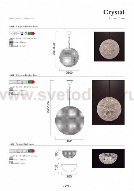 Люстра испанской компании MANTRA из металла цвета хром. Плафон из хрусталя.