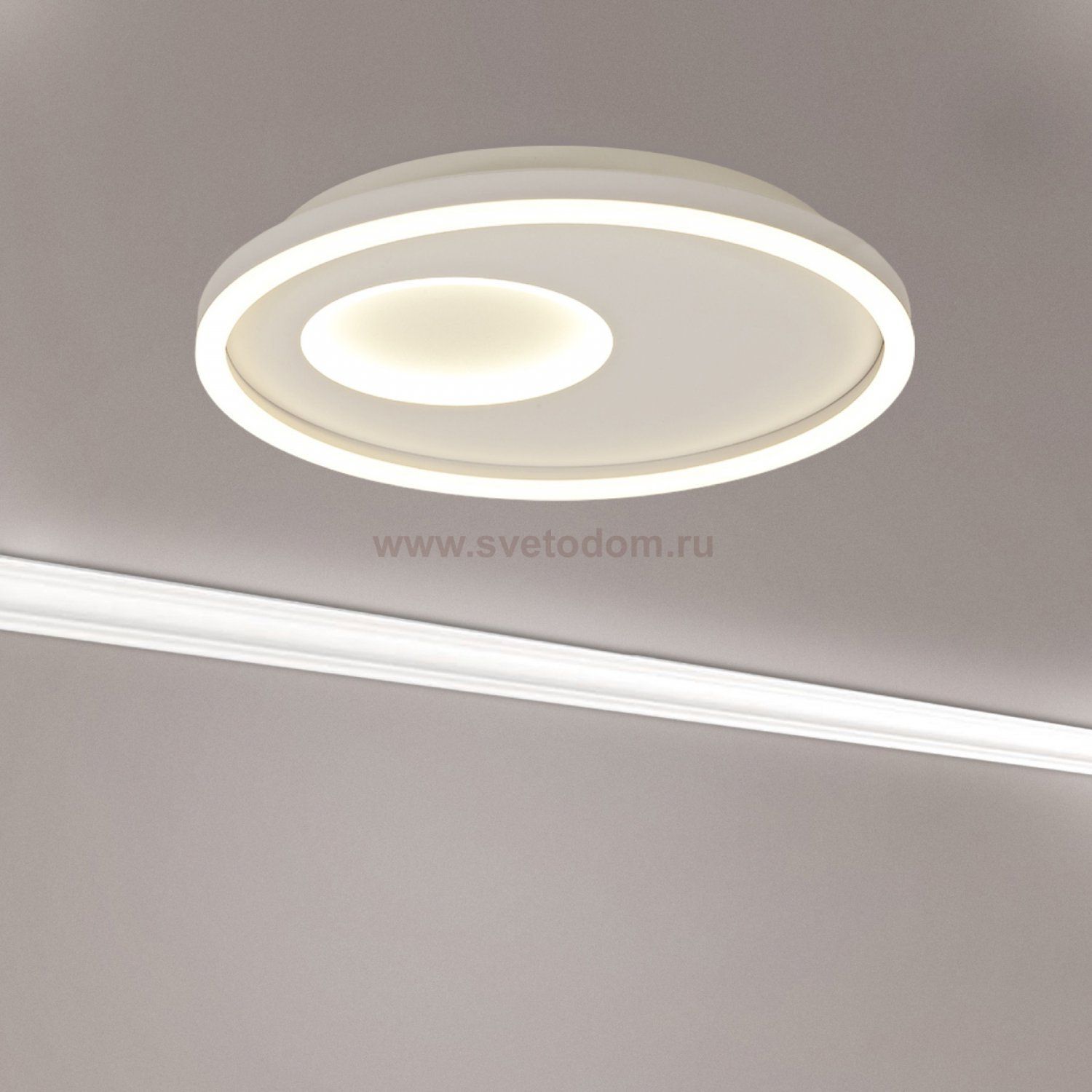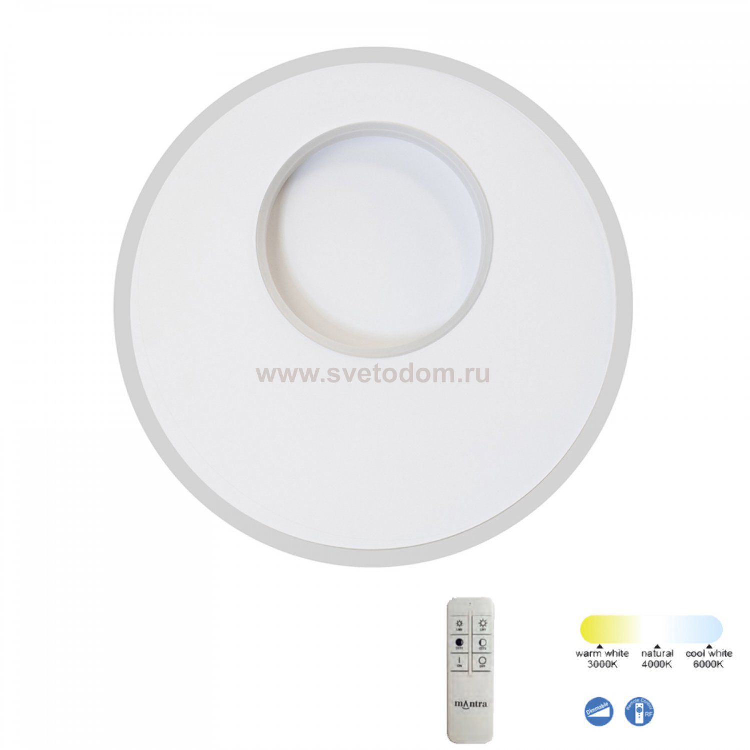 Потолочный светильник LED испанской компании MANTRA из акрила, металла и полиуретана белого цвета. Цветовая температура диммируемая от 3000К до 6000К (теплый-нейтральный-холодный свет). Световой поток 1800 Lm. Управление пультом ДУ.