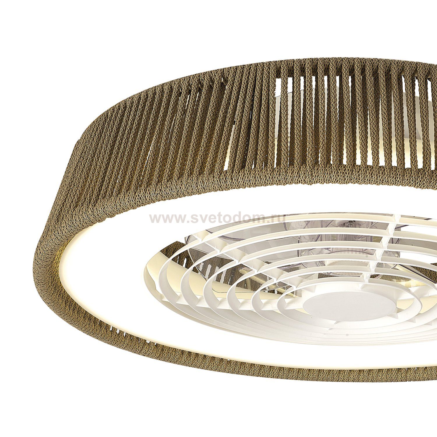 Вентилятор мощностью 35 Вт и 25 Вт установлен за сеткой абажура с замысловатым узором, который создает оптическую иллюзию и добавляет вентилятору эстетичности.