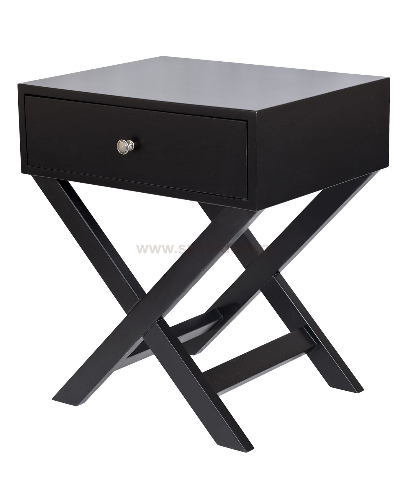 Черная компактная тумба Tomas black лофт изготовлена на основе МДФ и массива березы, гармонично вписывается в обстановку жилых помещений, выполненных в минималистическом стиле. Занимает мало места, приятной темной расцветкой вносит в обстановку освежающий эффект. Модель оснащена двумя парами оригинально перекрещивающихся ножек с перекладинами между ними. Вместительный ящик для мелочей украшен золотистой ручкой.