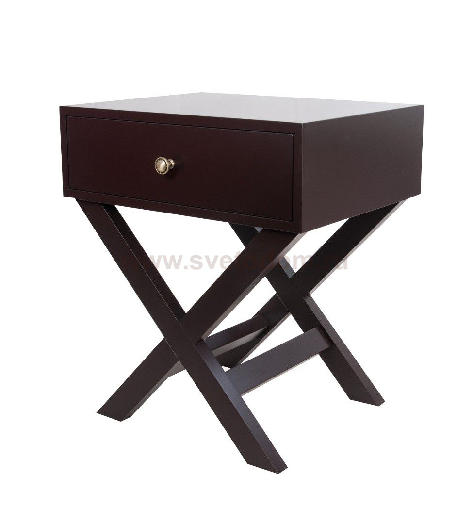 Коричневая компактная тумба Tomas лофт изготовлена на основе МДФ и массива березы, гармонично вписывается в обстановку жилых помещений, выполненных в минималистическом стиле. Занимает мало места, приятной темной расцветкой вносит в обстановку освежающий эффект. Модель оснащена двумя парами оригинально перекрещивающихся ножек с перекладинами между ними. Вместительный ящик для мелочей украшен серебристой ручкой.