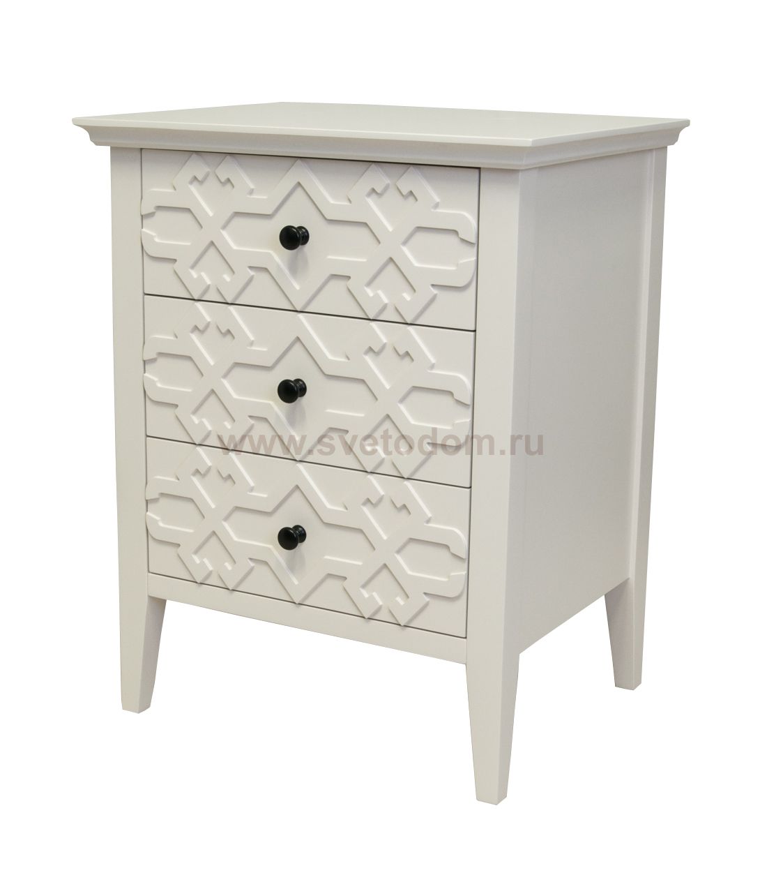 Белая тумба Friz white современный классик на основе массива дуба и МДФ, выполненная в оригинальном стиле, украшает интерьер и помогает гармонично организовать окружающее пространство. Три выдвижных ящика предназначены для компактного хранения различных мелочей. Белый цвет модели вносит свежесть в обстановку, а изящная резьба по лицевой части служит дополнительным элементом декора.