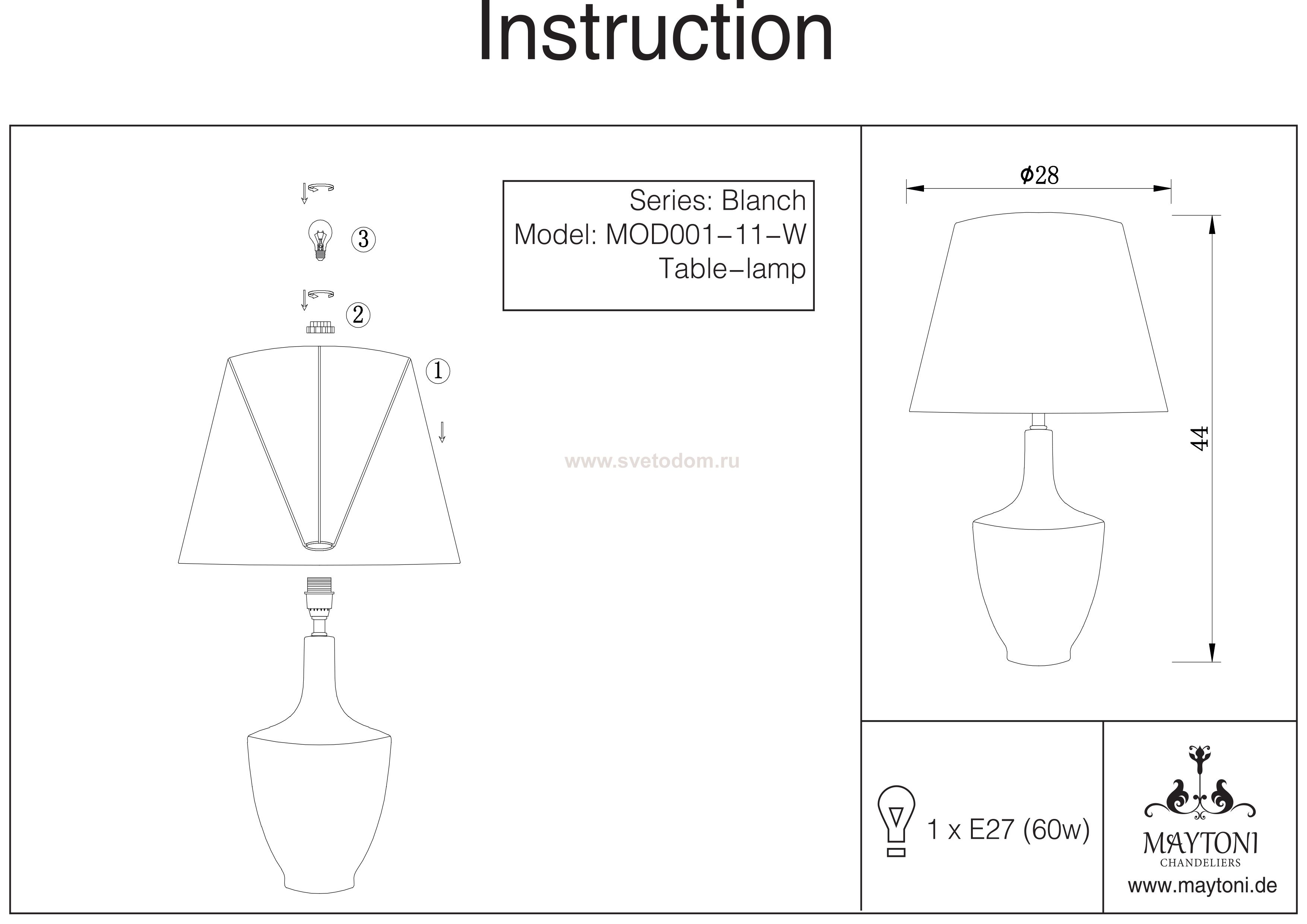 Настольная лампа – это не просто источник дополнительного освещения, но и оригинальный элемент декора. Его можно установить в спальне, гостиной, кабинете и других комнатах. Интернет-магазин «Светодом» предлагает настольные лампы разных стилей по доступным ценам. Благодаря большому ассортименту Вы обязательно найдете в нашем каталоге именно ту модель, которую искали. Настольная лампа Maytoni MOD001-11-W – прекрасный вариант для завершения интерьера. Ее можно включить одновременно с люстрой для более яркого освещения или без нее для создания уютной атмосферы, настраивающей на отдых. Купить настольную лампу Maytoni MOD001-11-W Вы можете с помощью виртуальной «Корзины» или по контактным номерам, указанным на сайте. |