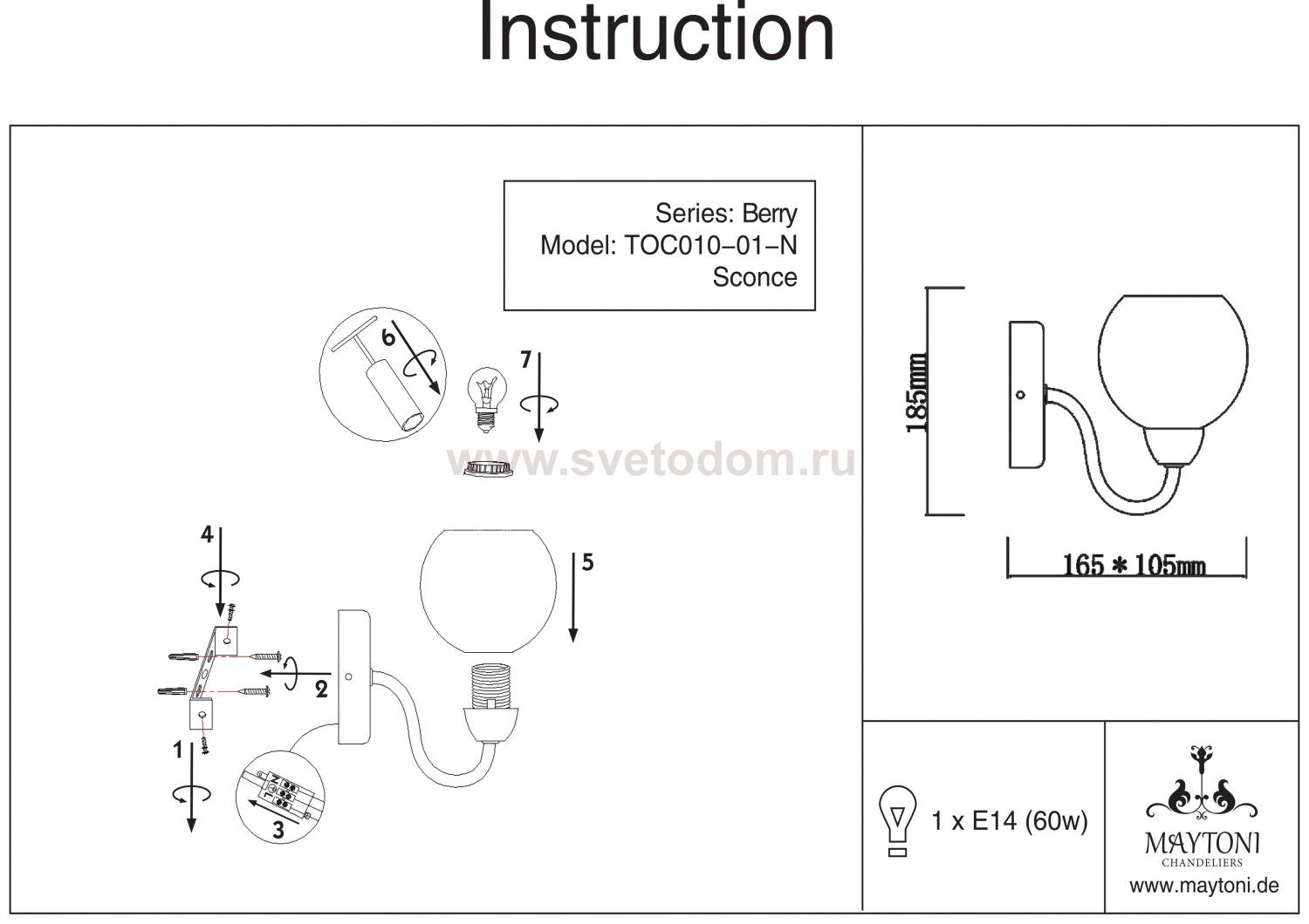 Бра Maytoni MOD010-WL-01-N Berry на протяжении многих лет притягивает к себе искушенных дизайнеров и клиентов, обустраивающих квартиру или загородный дом, а также офисные или общественные места. Благодаря эстетической тонкости и технической проработанности германская модель MOD010-WL-01-N популярна в онлайн продажах на сайте и в наших "земных" магазинах сети Светодом.