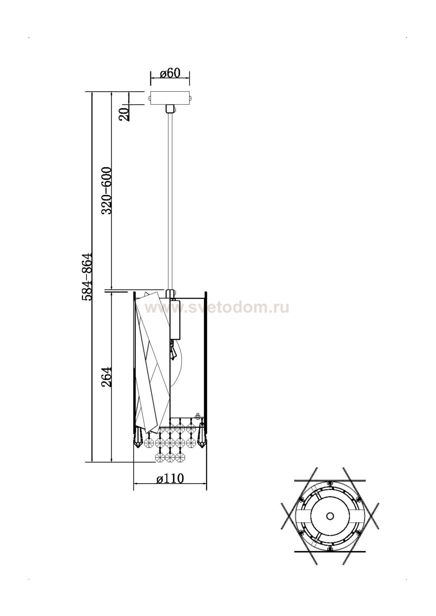 Характеризует подвесную систему светильника. Данную длину возможно изменять: дополнять или сокращать в пределах указанных данных.