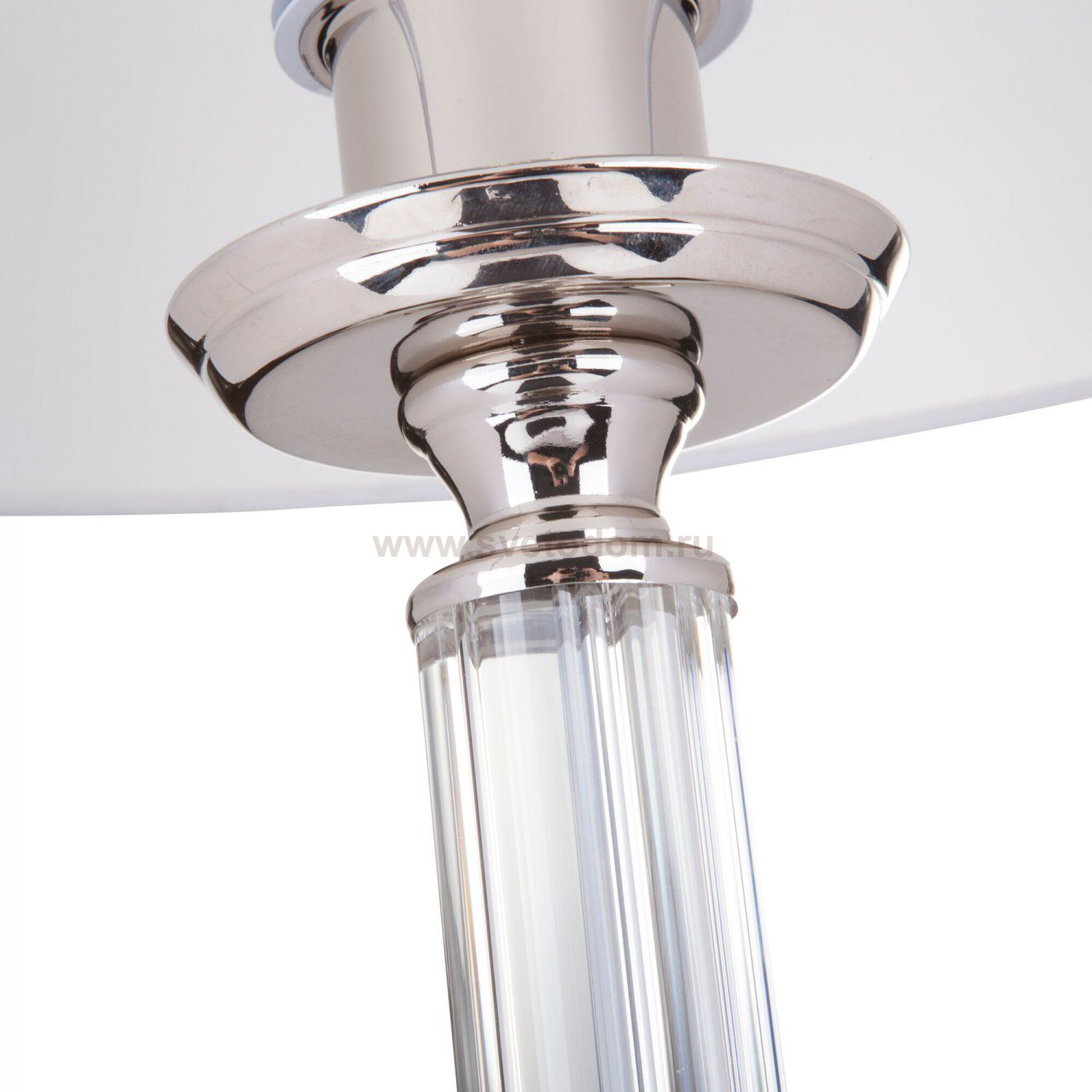 Арматура из металла. Декоративные элементы из стекла. Абажур из ПВХ покрыт белой тканью. Основа абажура - трапеция. Срок службы