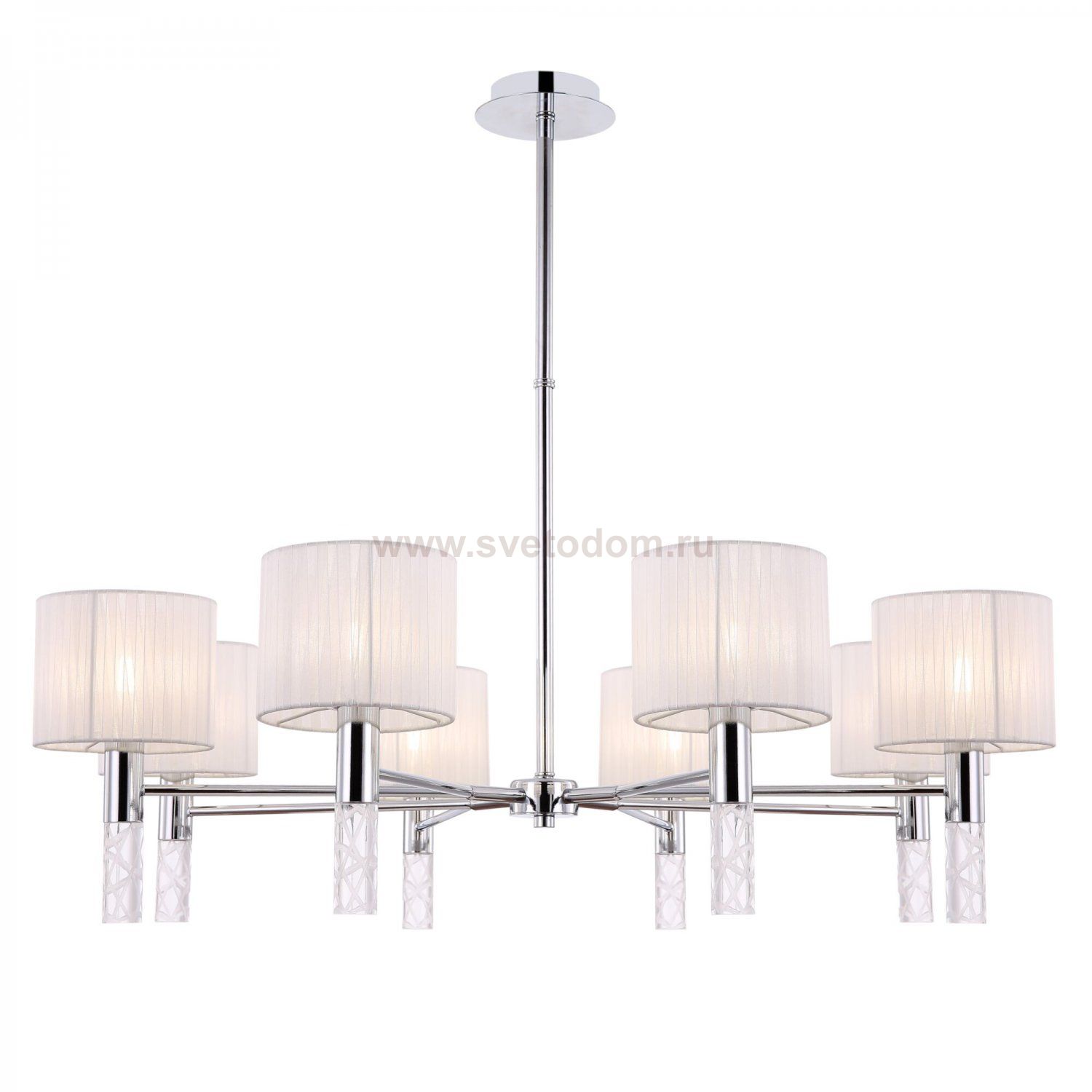 Особенности модели MOD045PL-08CH: Светильники с абажурами из кремового текстиля и арматурой из хромированного металла. Основание плафонов декорировано цилиндрическими элементами из акрилового стекла, с нанесенным на них графическим орнаментом. Люстры трех размеров и бра подойдут для освещения гостиной квартиры или загородного дома, а также для гостиничных лобби и общественных пространств.
