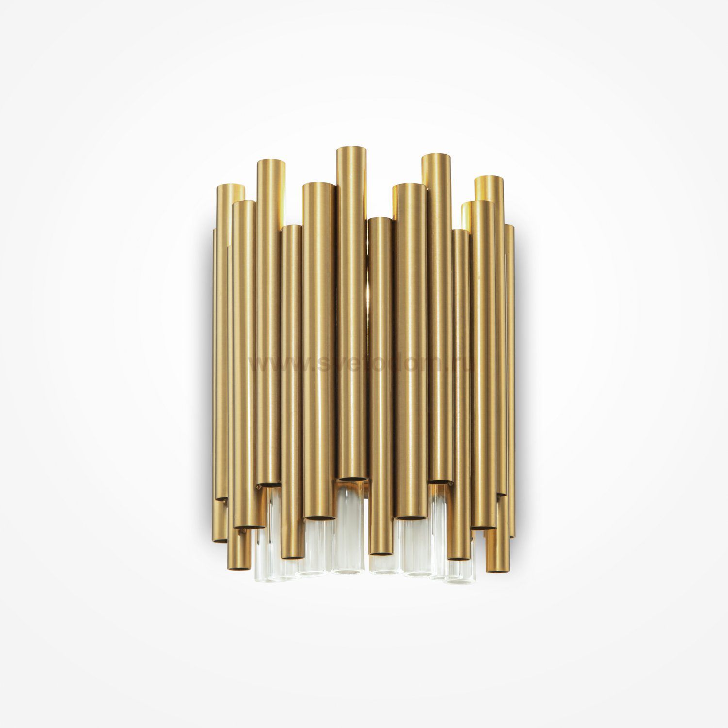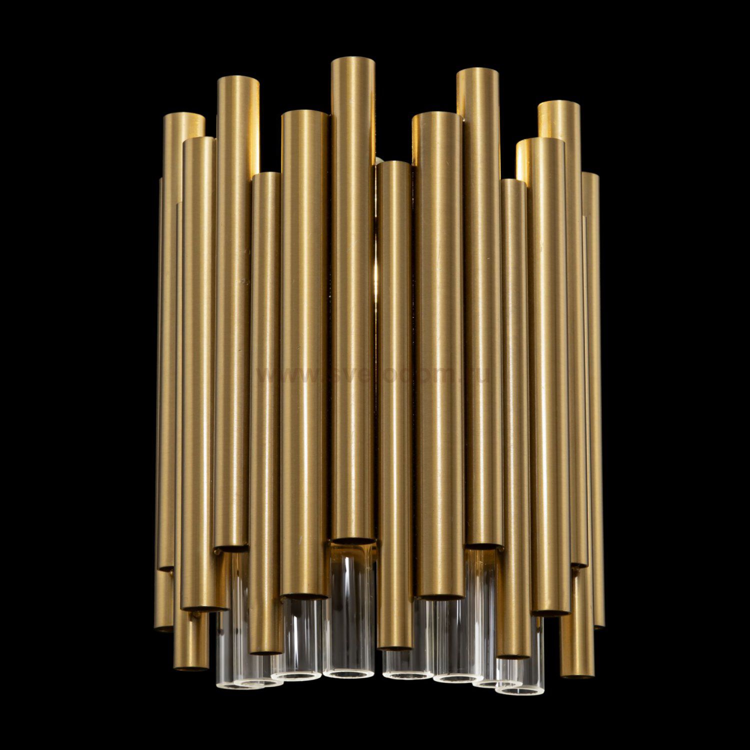 Материал арматуры – металл, цвет – латунь. Декор в виде трубок из нержавеющей стали в бронзовом цвете. Последний ряд декора – стеклянные трубки – обеспечивает невесомый силуэт.
