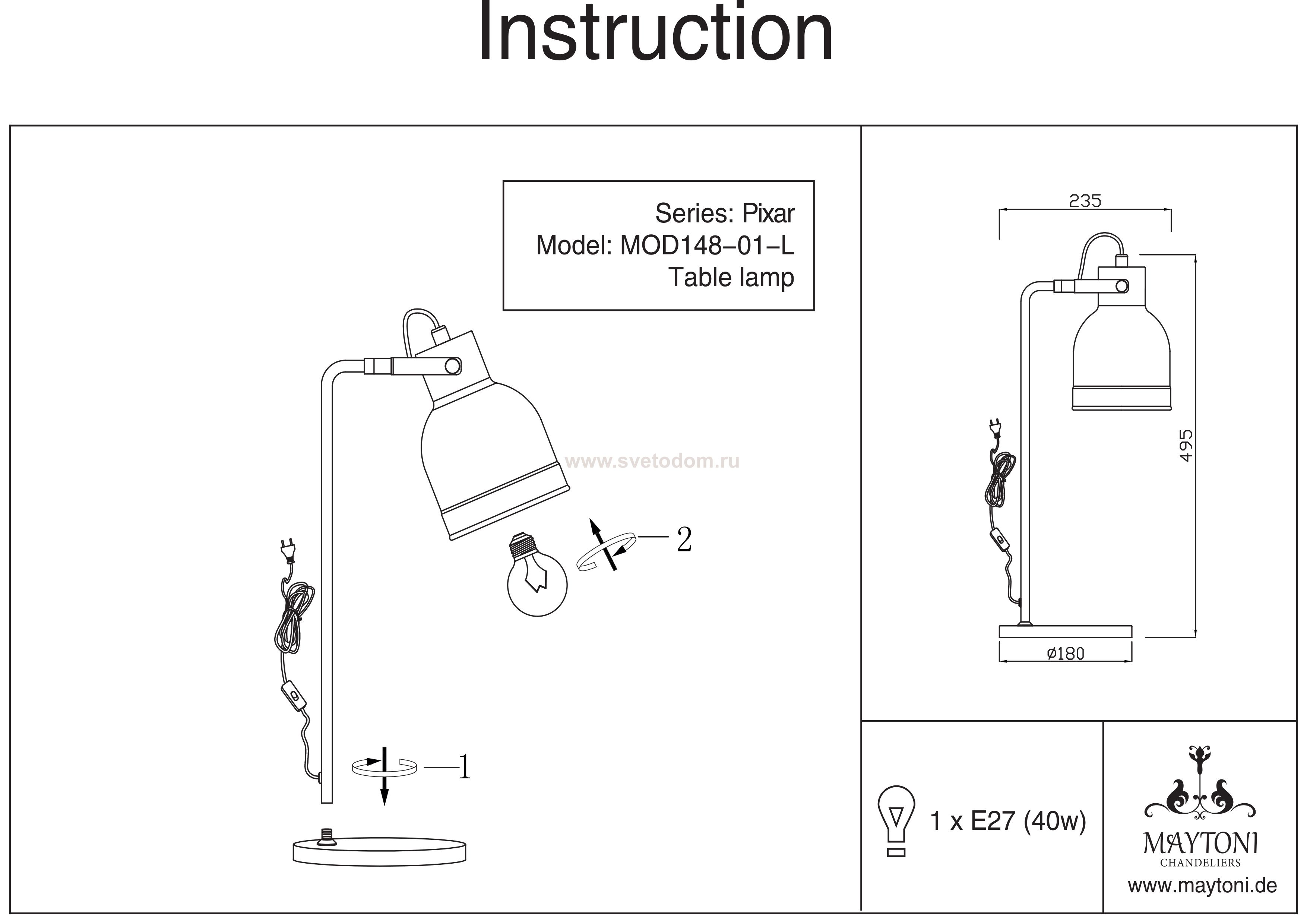 Настольная лампа – это не просто источник дополнительного освещения, но и оригинальный элемент декора. Его можно установить в спальне, гостиной, кабинете и других комнатах. Интернет-магазин «Светодом» предлагает настольные лампы разных стилей по доступным ценам. Благодаря большому ассортименту Вы обязательно найдете в нашем каталоге именно ту модель, которую искали. Настольная лампа Maytoni MOD148-01-L – прекрасный вариант для завершения интерьера. Ее можно включить одновременно с люстрой для более яркого освещения или без нее для создания уютной атмосферы, настраивающей на отдых. Купить настольную лампу Maytoni MOD148-01-L Вы можете с помощью виртуальной «Корзины» или по контактным номерам, указанным на сайте. |