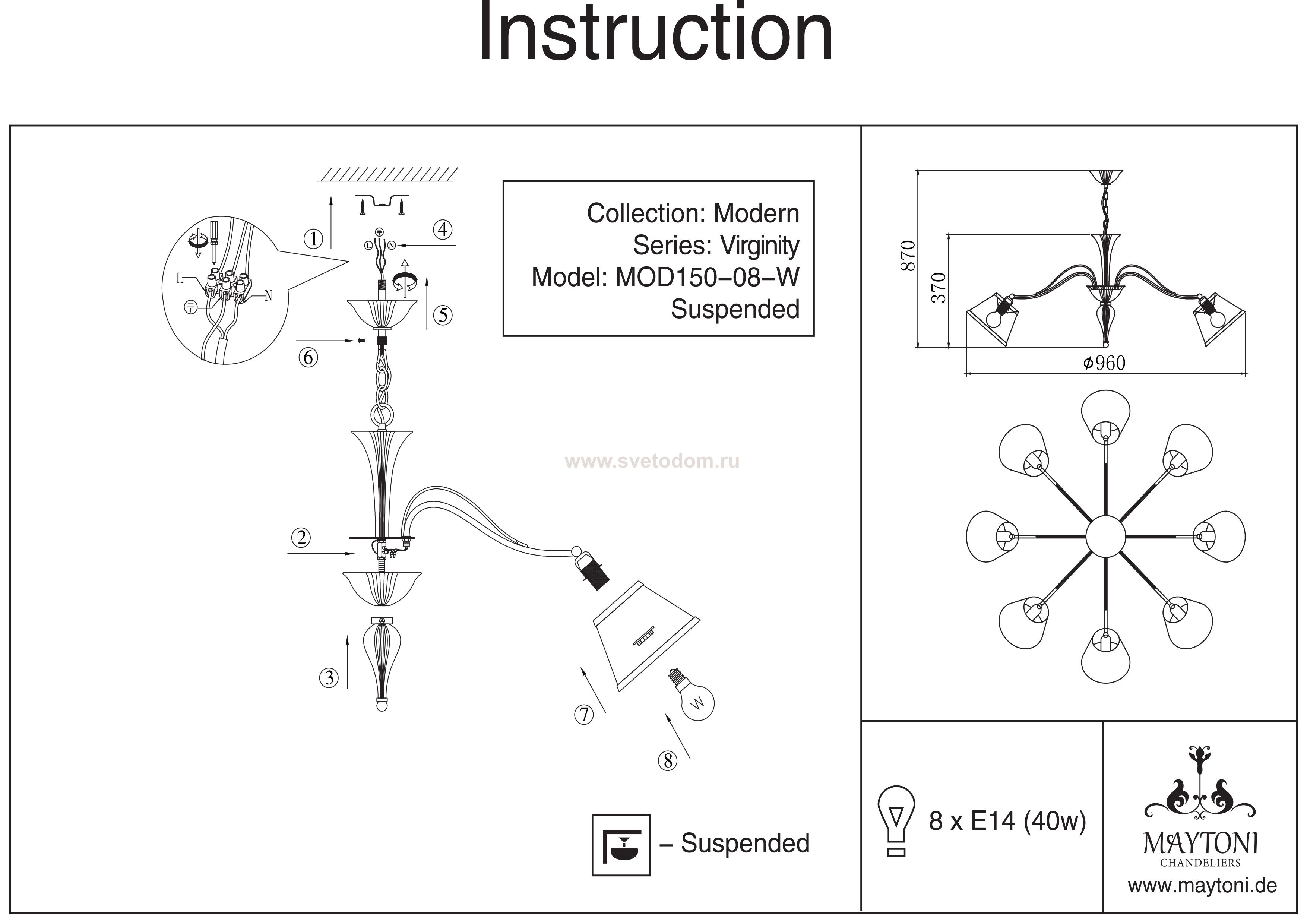 Компания «Светодом» предлагает широкий ассортимент люстр от известных производителей. Представленные в нашем каталоге товары выполнены из современных материалов и обладают отличным качеством. Благодаря широкому ассортименту Вы сможете найти у нас люстру под любой интерьер. Мы предлагаем как классические варианты, так и современные модели, отличающиеся лаконичностью и простотой форм. Стильная люстра Maytoni MOD150-08-W станет украшением любого дома. Эта модель от известного производителя не оставит равнодушным ценителей красивых и оригинальных предметов интерьера. Люстра Maytoni MOD150-08-W обеспечит равномерное распределение света по всей комнате. При выборе обратите внимание на характеристики, позволяющие приобрести наиболее подходящую модель. Купить понравившуюся люстру по доступной цене Вы можете в интернет-магазине «Светодом». |