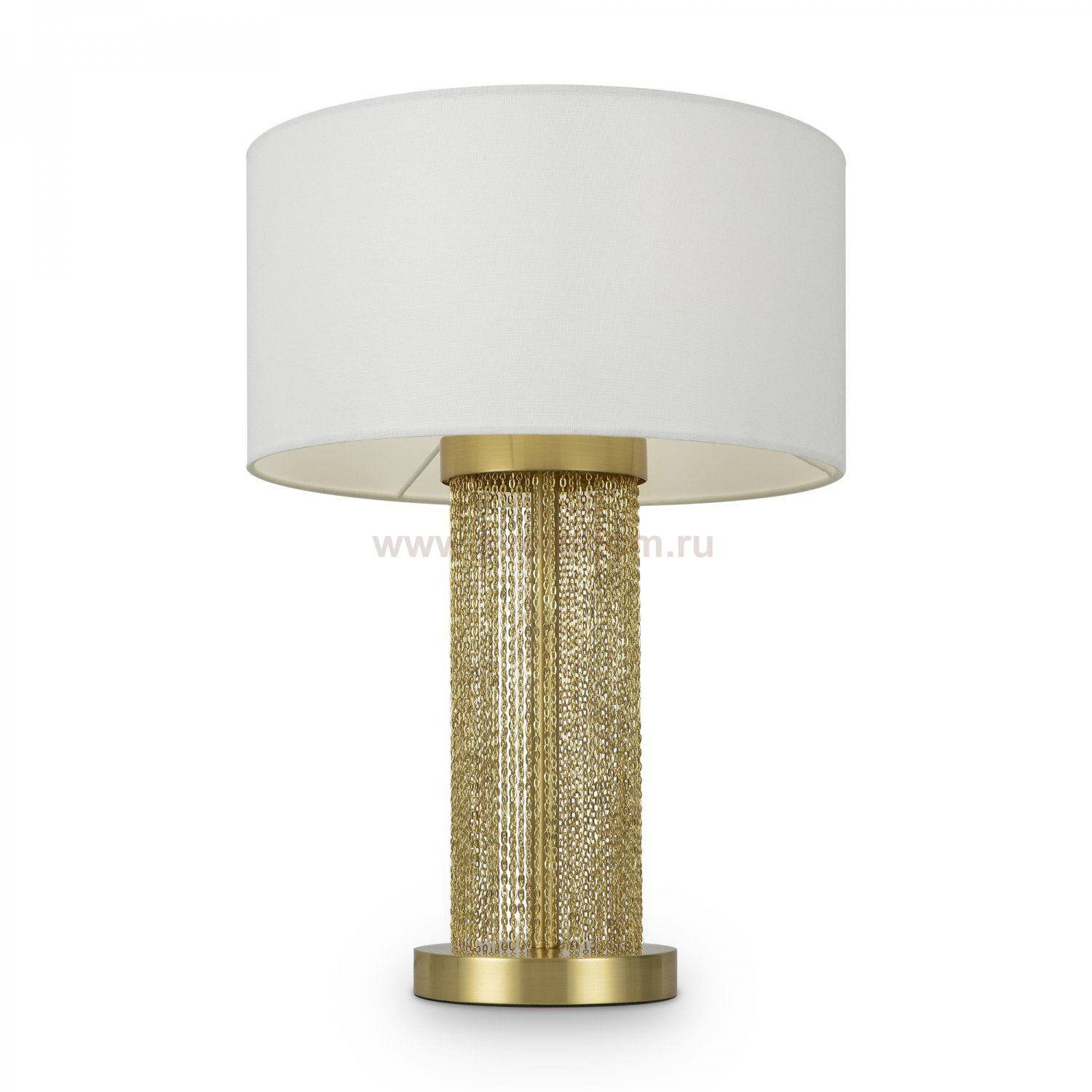 Арматура из нержавеющей стали. Цвет — золото. Абажур — белая ткань. Декоративные цепочки в тон арматуре. Съемный тканевый рассеиватель смягчает световой поток. Источники света — лампы с цоколем Е14.