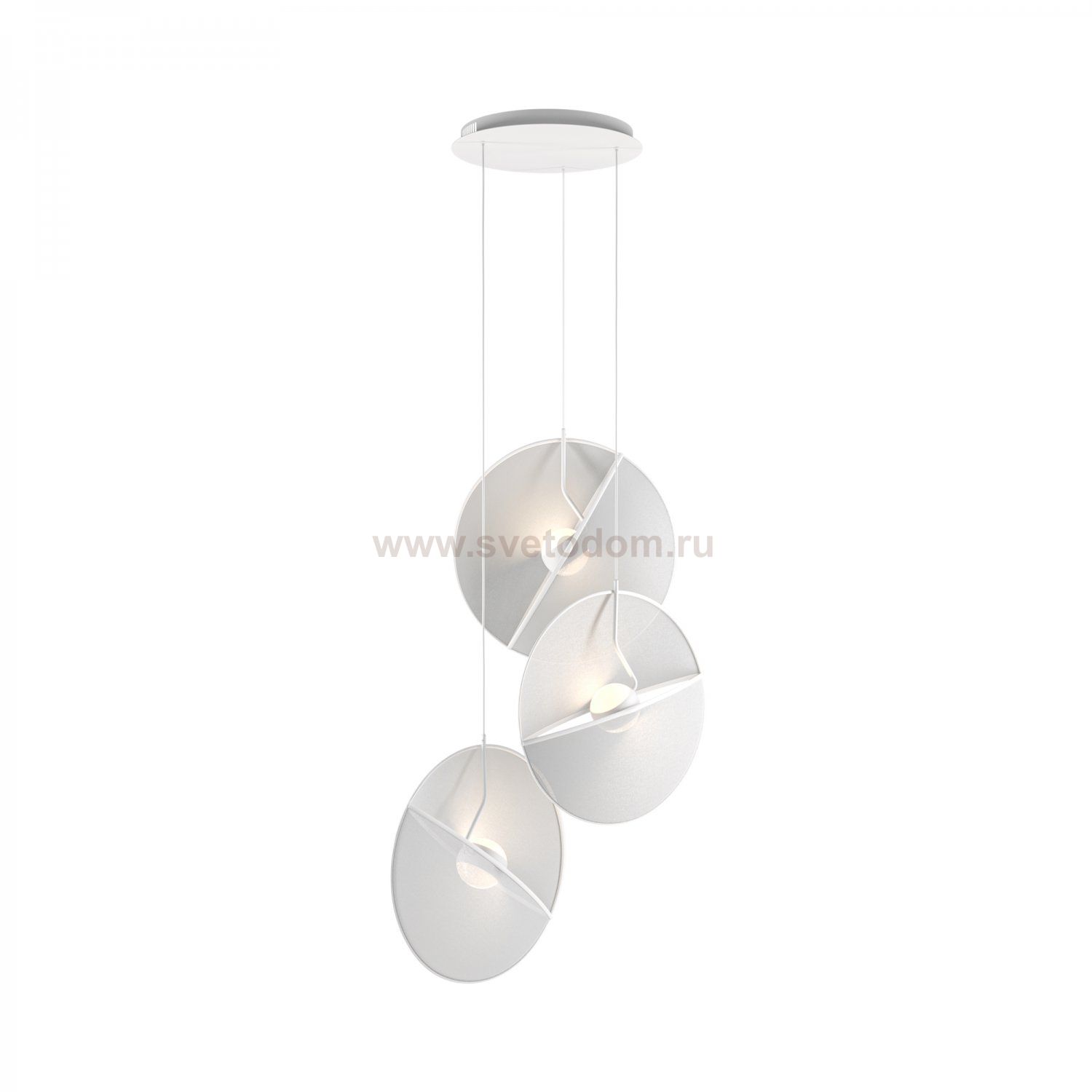 Арматура и плафон из металла и акрила. Цвет — белый. Декоративный светоотражающий элемент из полупрозрачной текстурированной ткани. Регулируемая высота. LED-источники света с цветовой температурой 3000К.