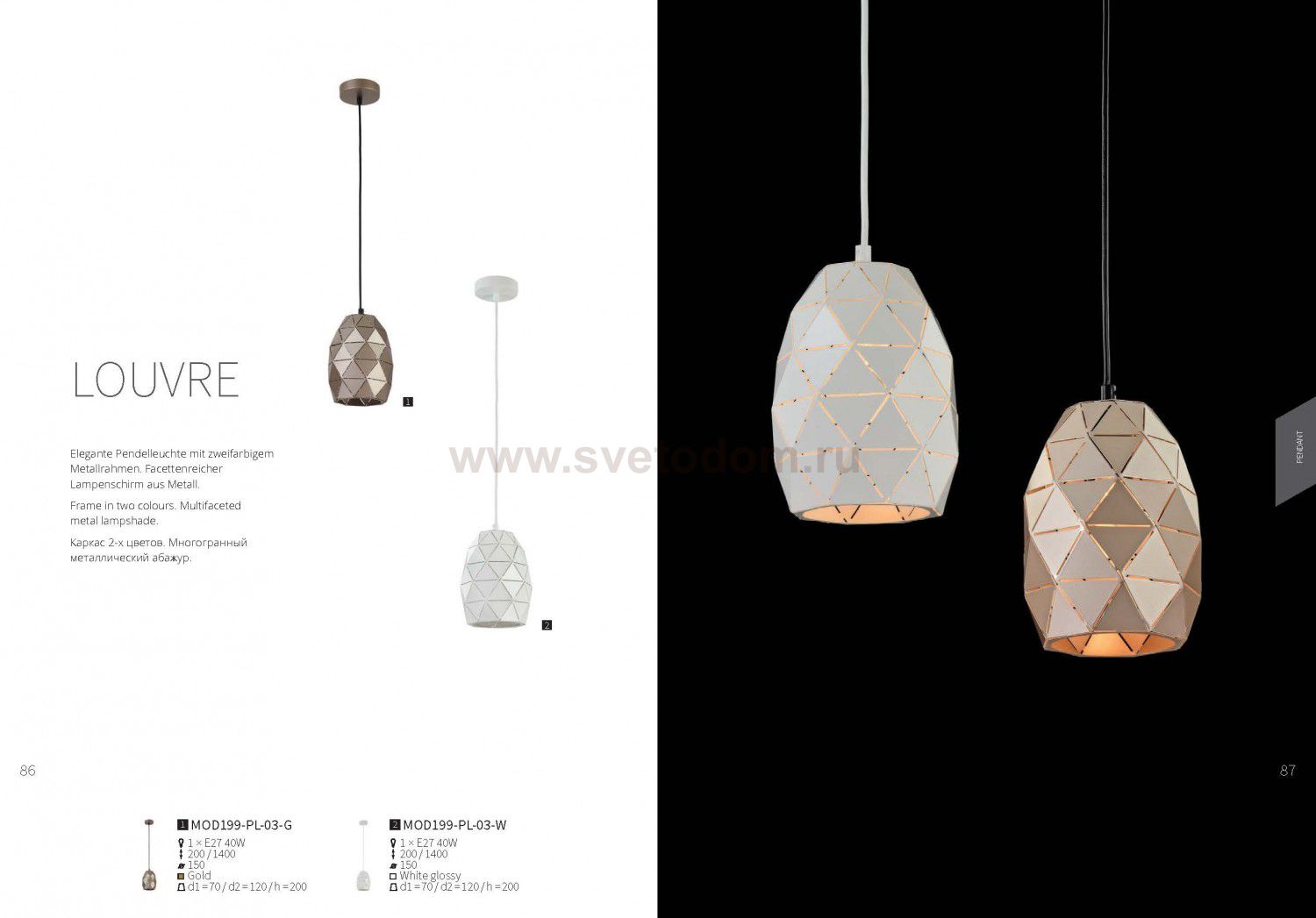 Особенности модели MOD199-PL-03-W: Мягкий рассеянный свет струится через тонкие прорези в металлическом абажуре. Его многогранная форма навеяна современной архитектурой. Плафоны светильников серии представлены в белом и в золотом цвете. Высота светильников регулируется длиной шнура.