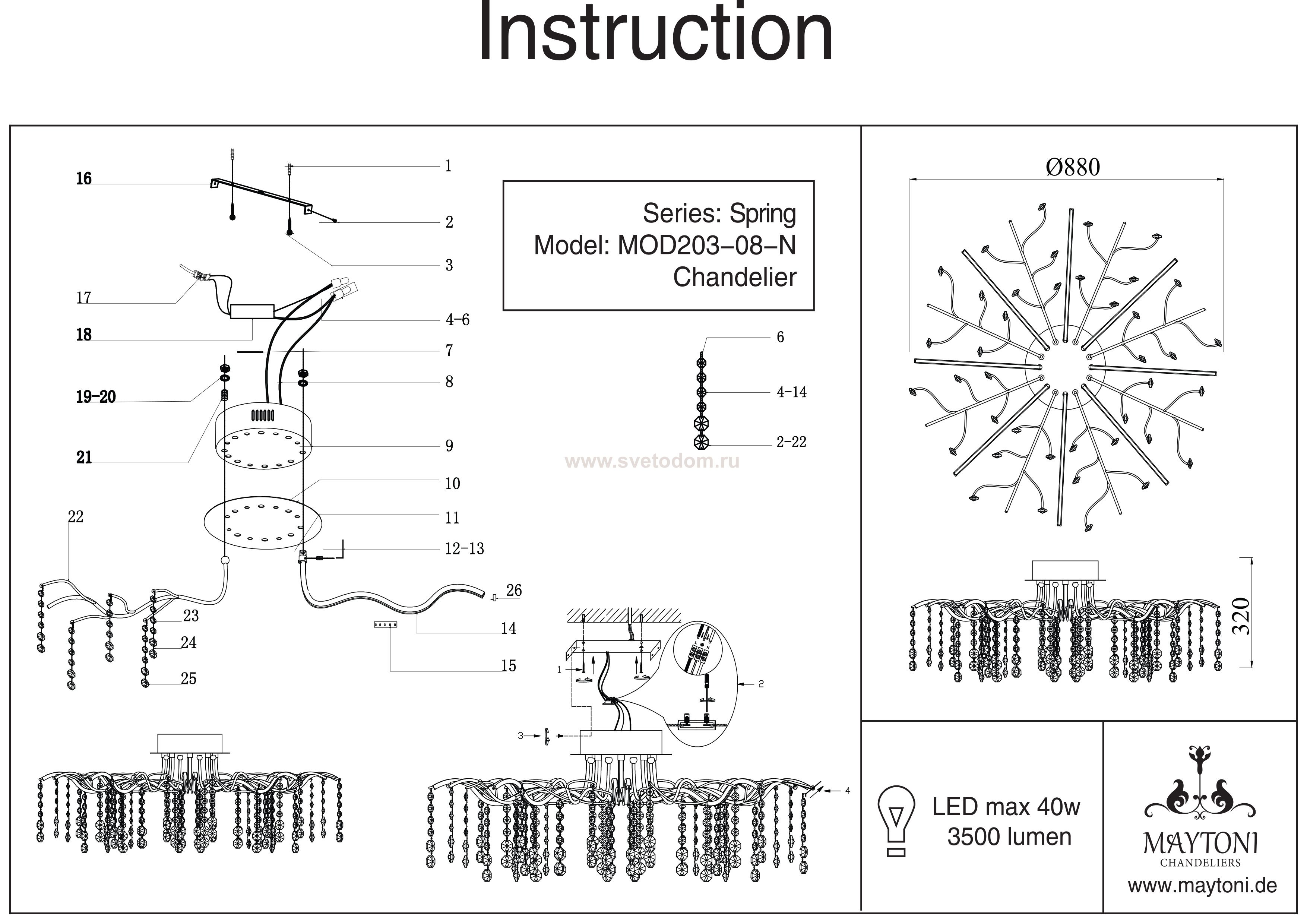 Максимальная потребляемая мощность лампы, которую можно использовать в люстре.