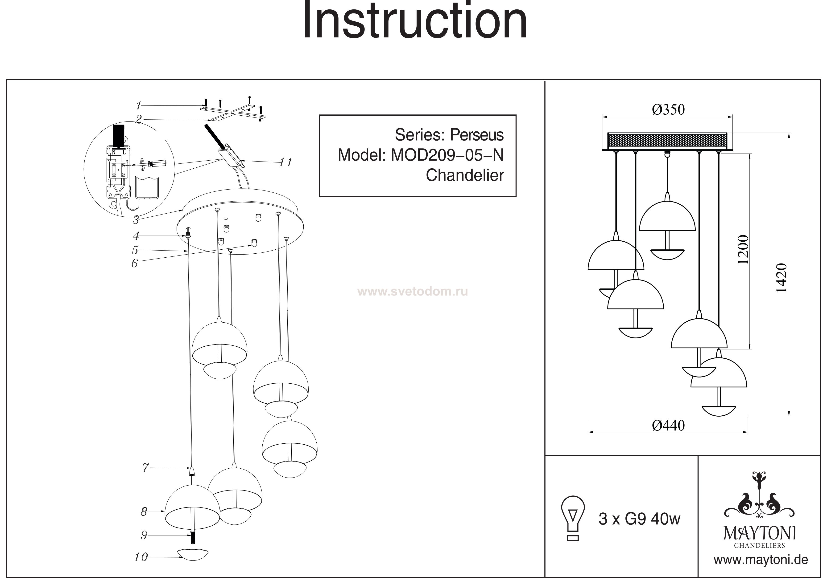 Максимальная потребляемая мощность лампы, которую можно использовать в люстре.