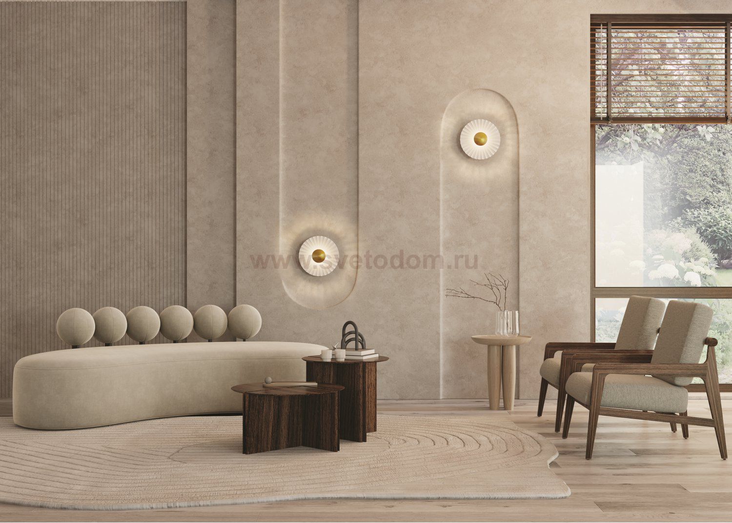 Материал светильников - металл округлой формы 300 мм в диаметре. Цвет - белый. LED-источник света. Цветовая температура — 3000 К. Тип рассеивания — переотраженный. Угол рассеивания — 180°. Металлизированный декоративный элемент, компактные размеры изделия позволяют использовать бра в качестве декора. |