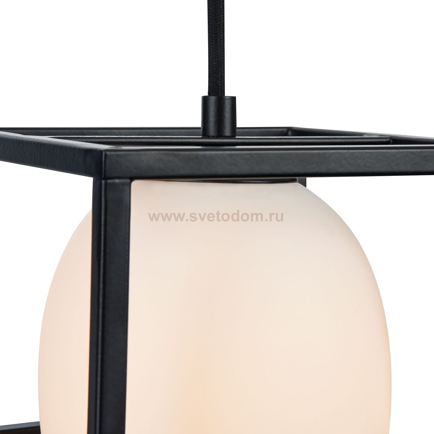 Каркас из металла покрыт черным цветом. Плафон в виде шара из белого матового стекла. Дополнительно