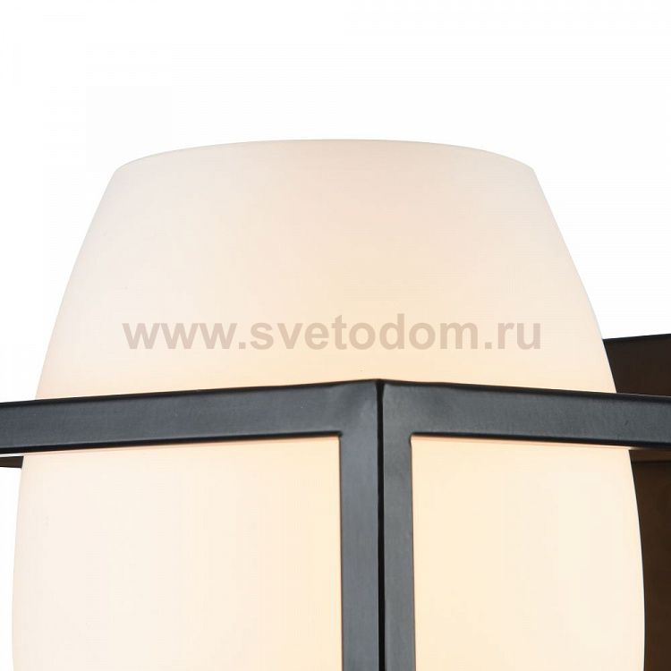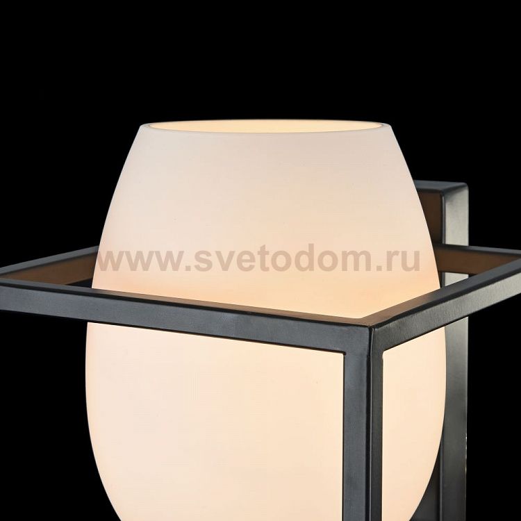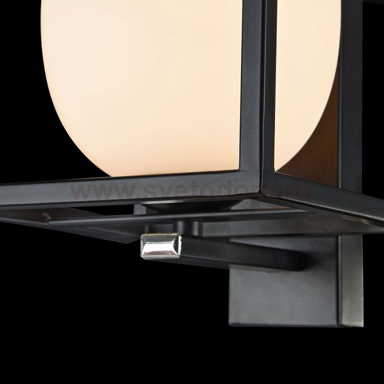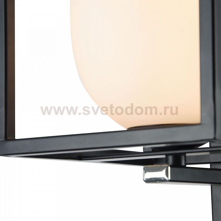 Каркас из металла покрыт черным цветом. Плафон в виде шара из белого матового стекла. Дополнительно