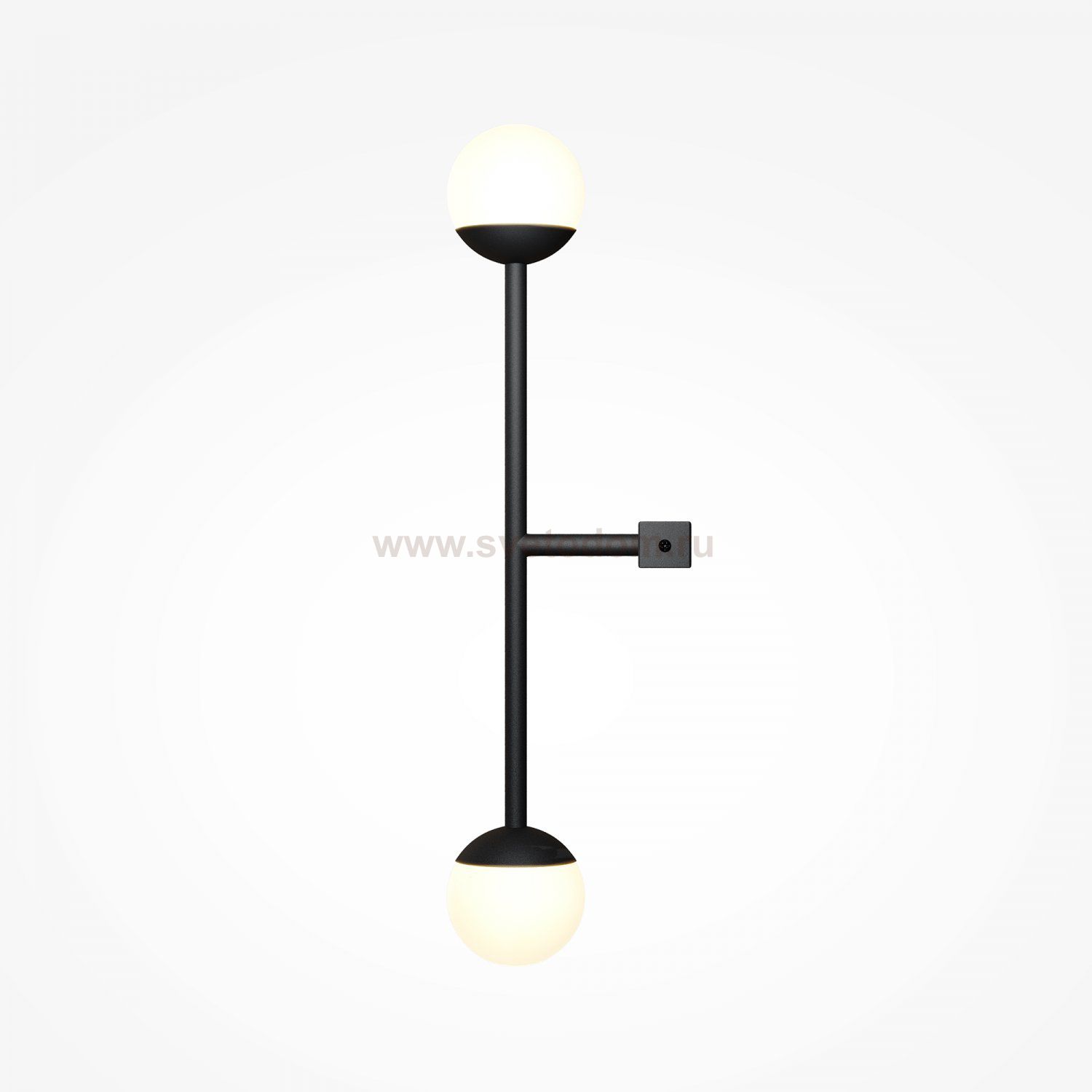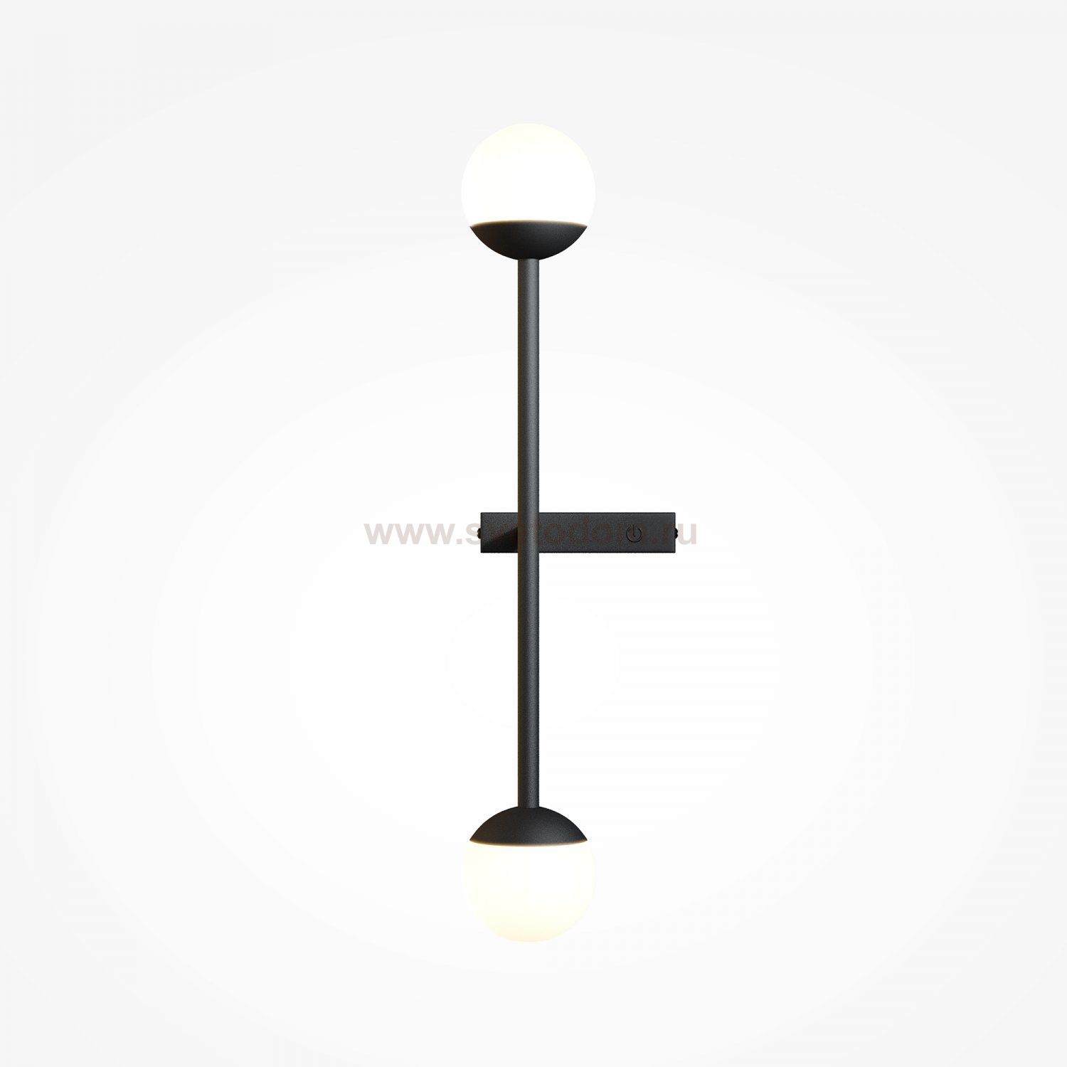 Материал арматуры — металл, цвета - латунь, черный. Плафоны-сферы из белого матового стекла. LED источник света, цветовая температура 3000К. Встроенный выключатель регулирует яркость света прикосновением с шагом 25%, 50%, 75% и 100%.