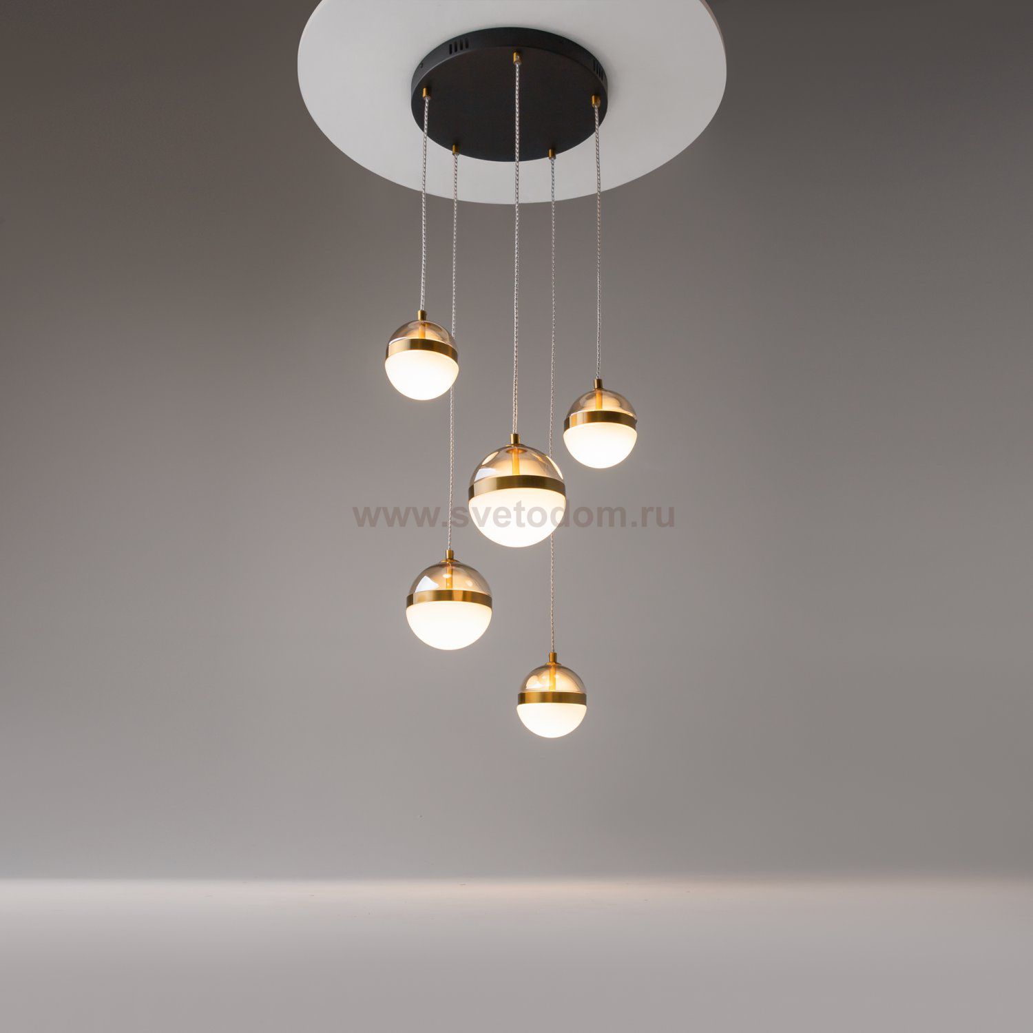 Черная потолочная чаша дополнена финишным антибликовым покрытием sandy, декоративный элемент плафона выполнен из металла цвета сатинированной латуни. Сочетание двух фактурных стекол в плафоне: нижняя полусфера из матового белого стекла для создания мягкого рассеянного света, верхняя часть плафона - из тонированного янтарного стекла. Внутри установлен LED-модуль, создающий равномерное освещение, направленное вверх и вниз. Цветовая температура – 3000К, угол рассеивания — 120°.