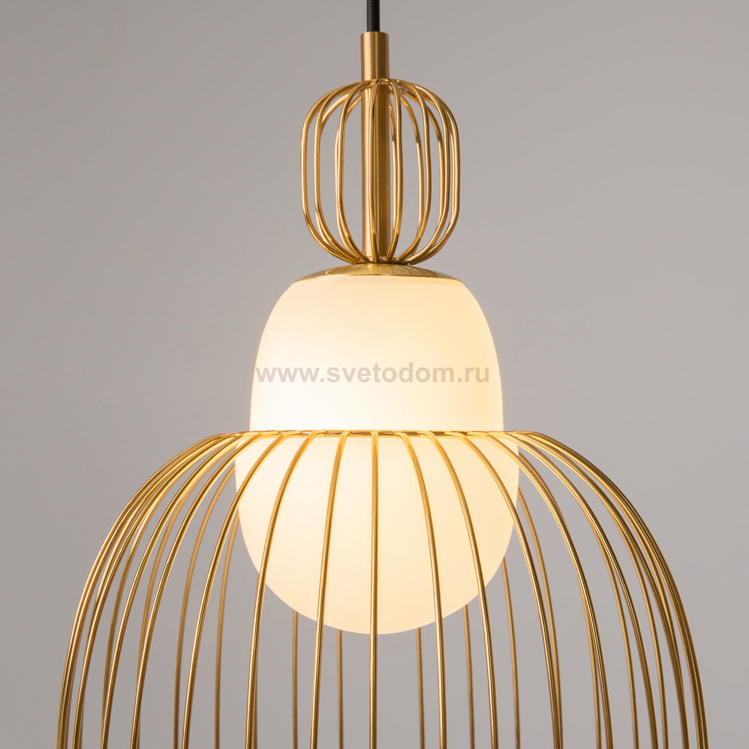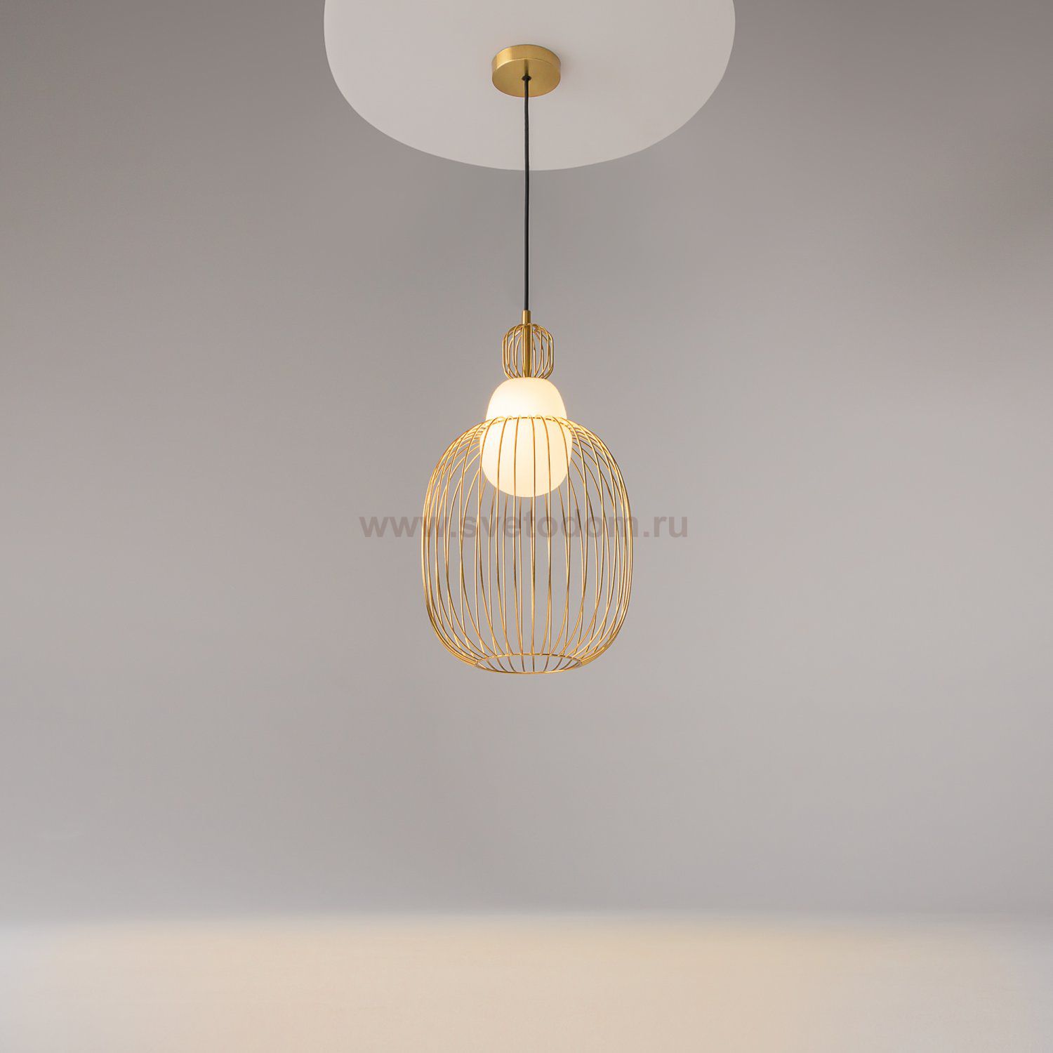 Цвет арматуры — латунь. Материал арматуры — металл. Абажур — каркас из проволоки, стекло. Оригинальный дизайн с эффектом левитации. Стеклянный рассеиватель со специальным выступом для крепления проволочного плафона. Два типа подвесных светильников: компактные со сменными лампами и крупный с LED-модулем для двунаправленного освещения. Провод длиной 3 метра для высоких потолков. Регулируемая высота подвеса. Универсальный дизайн для неоклассики, эклектики и фьюжн.