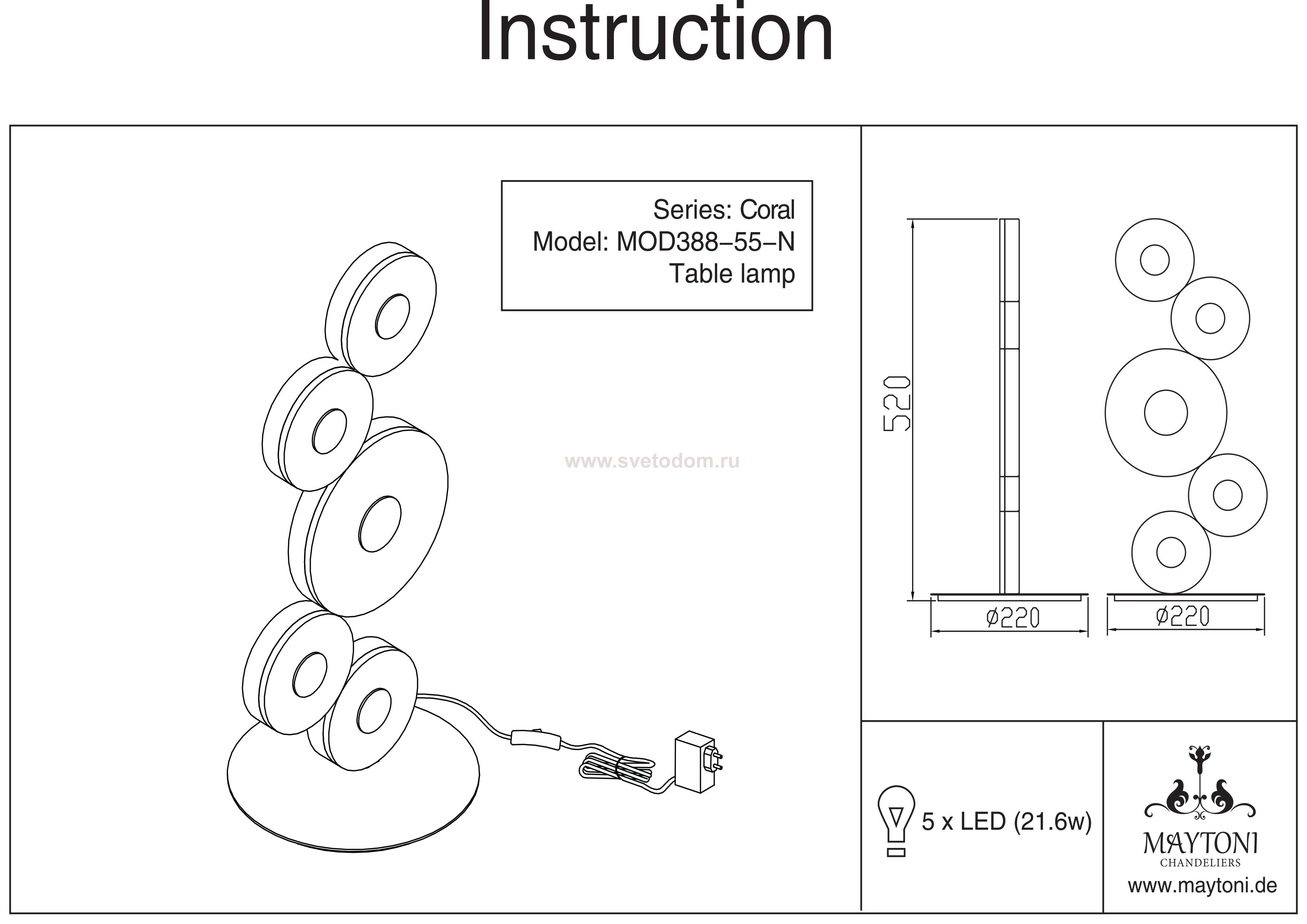 Настольная лампа – это не просто источник дополнительного освещения, но и оригинальный элемент декора. Его можно установить в спальне, гостиной, кабинете и других комнатах. Интернет-магазин «Светодом» предлагает настольные лампы разных стилей по доступным ценам. Благодаря большому ассортименту Вы обязательно найдете в нашем каталоге именно ту модель, которую искали. Настольная лампа Maytoni MOD388-55-N MOD388 – прекрасный вариант для завершения интерьера. Ее можно включить одновременно с люстрой для более яркого освещения или без нее для создания уютной атмосферы, настраивающей на отдых. Купить настольную лампу Maytoni MOD388-55-N MOD388 Вы можете с помощью виртуальной «Корзины» или по контактным номерам, указанным на сайте. |