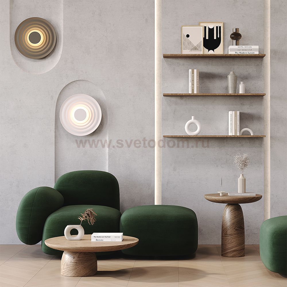 Светильники, вдохновленные японским садом камней и движением ветра. Волнообразные формы с матовой антибликовой поверхностью. Материал арматуры — алюминий. LED-источник света с температурой 3000К. Доступны в трех цветах: белый, серый, хаки. Переотраженный свет для создания мягкого освещения. Возможность составления различных композиций.