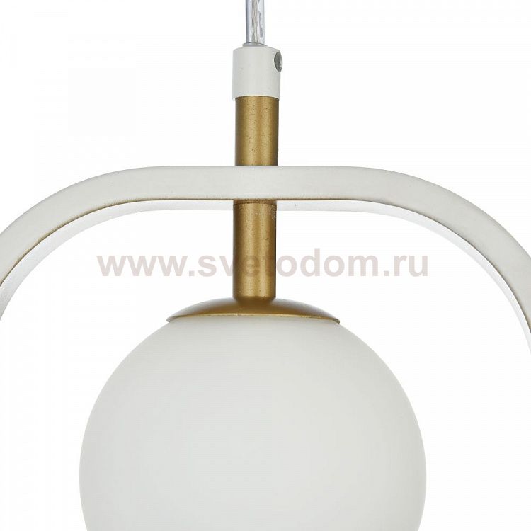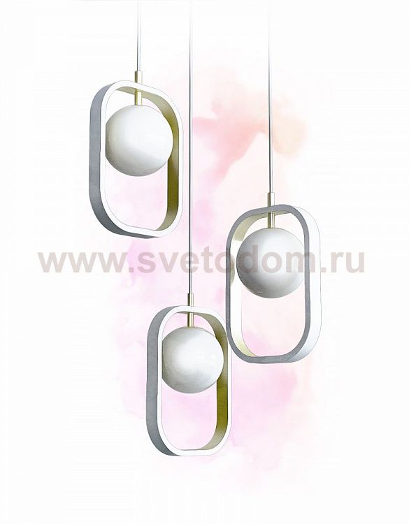 Металлическая арматура в комбинации двух оттенков: белый и серебро, белый и золото. Плафоны-сферы из выдувного стекла, цвет – белый. Регулируемая высота.