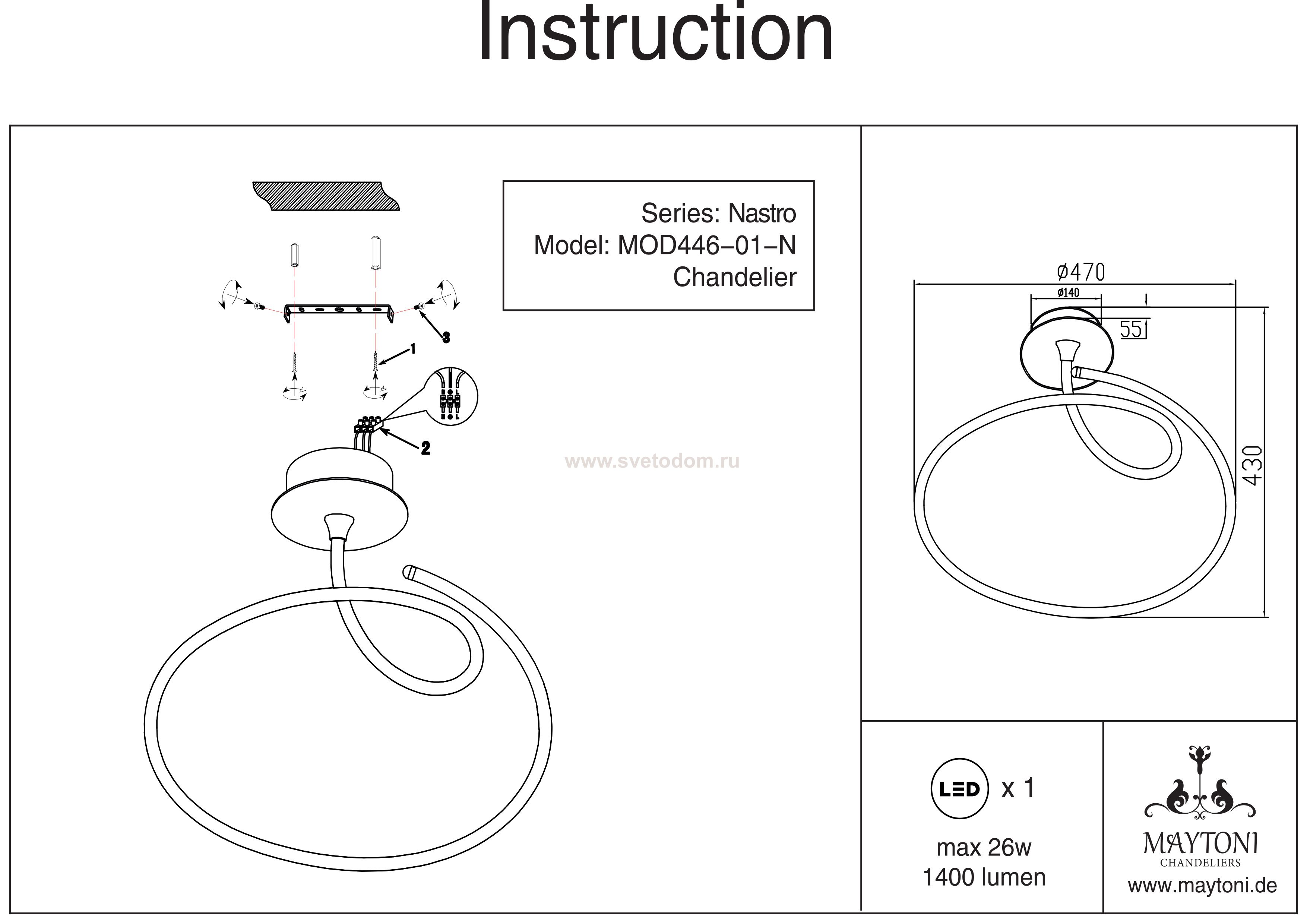 Компания «Светодом» предлагает широкий ассортимент люстр от известных производителей. Представленные в нашем каталоге товары выполнены из современных материалов и обладают отличным качеством. Благодаря широкому ассортименту Вы сможете найти у нас люстру под любой интерьер. Мы предлагаем как классические варианты, так и современные модели, отличающиеся лаконичностью и простотой форм. Стильная люстра Maytoni MOD446-01-N станет украшением любого дома. Эта модель от известного производителя не оставит равнодушным ценителей красивых и оригинальных предметов интерьера. Люстра Maytoni MOD446-01-N обеспечит равномерное распределение света по всей комнате. При выборе обратите внимание на характеристики, позволяющие приобрести наиболее подходящую модель. Купить понравившуюся люстру по доступной цене Вы можете в интернет-магазине «Светодом». Мы предлагаем доставку не только по Москве и Екатеринбурге, но и по всей России. |