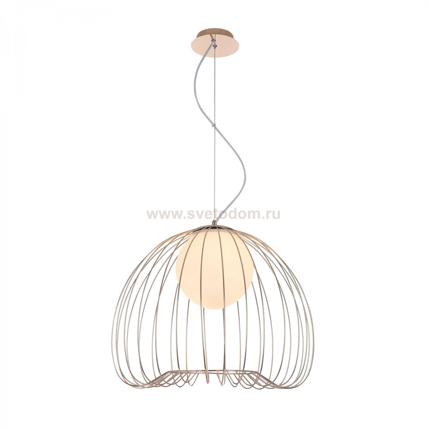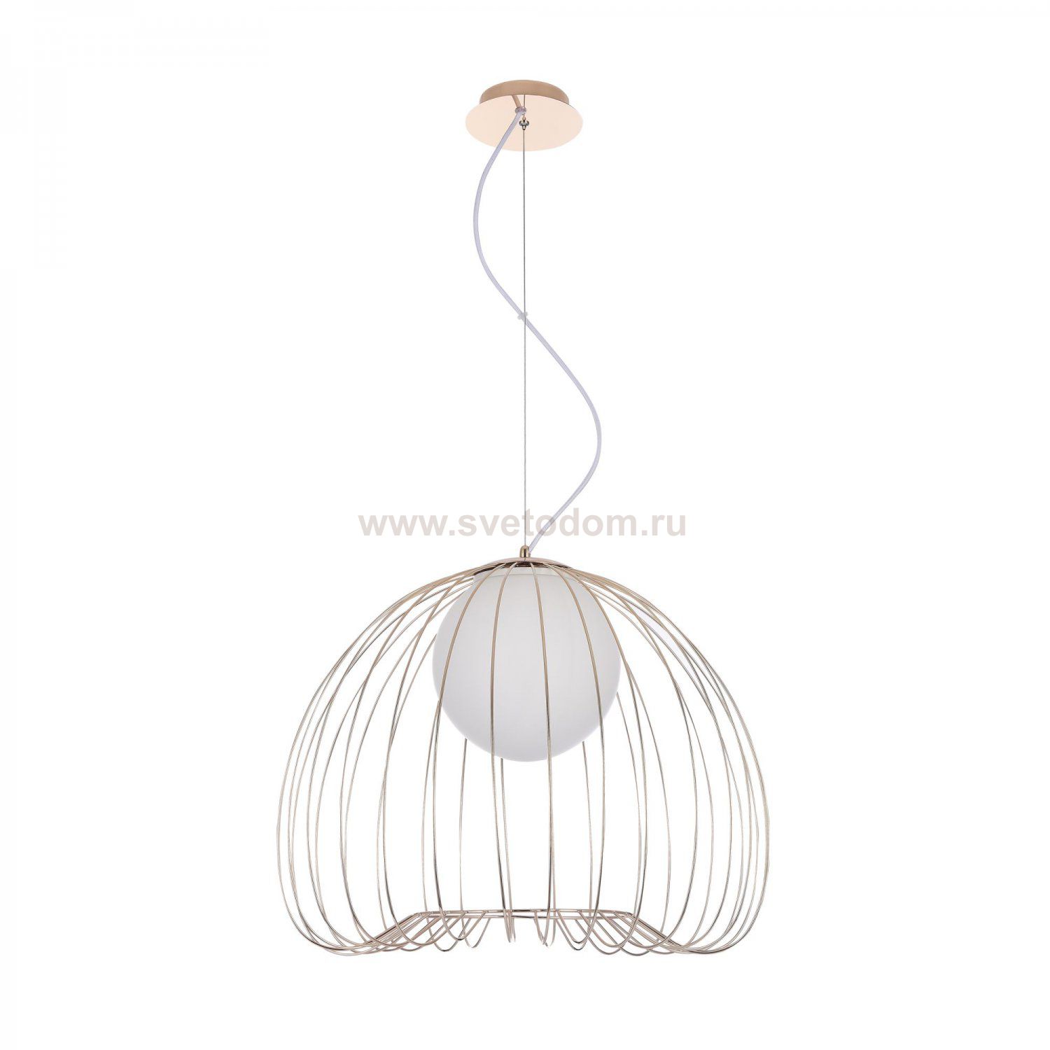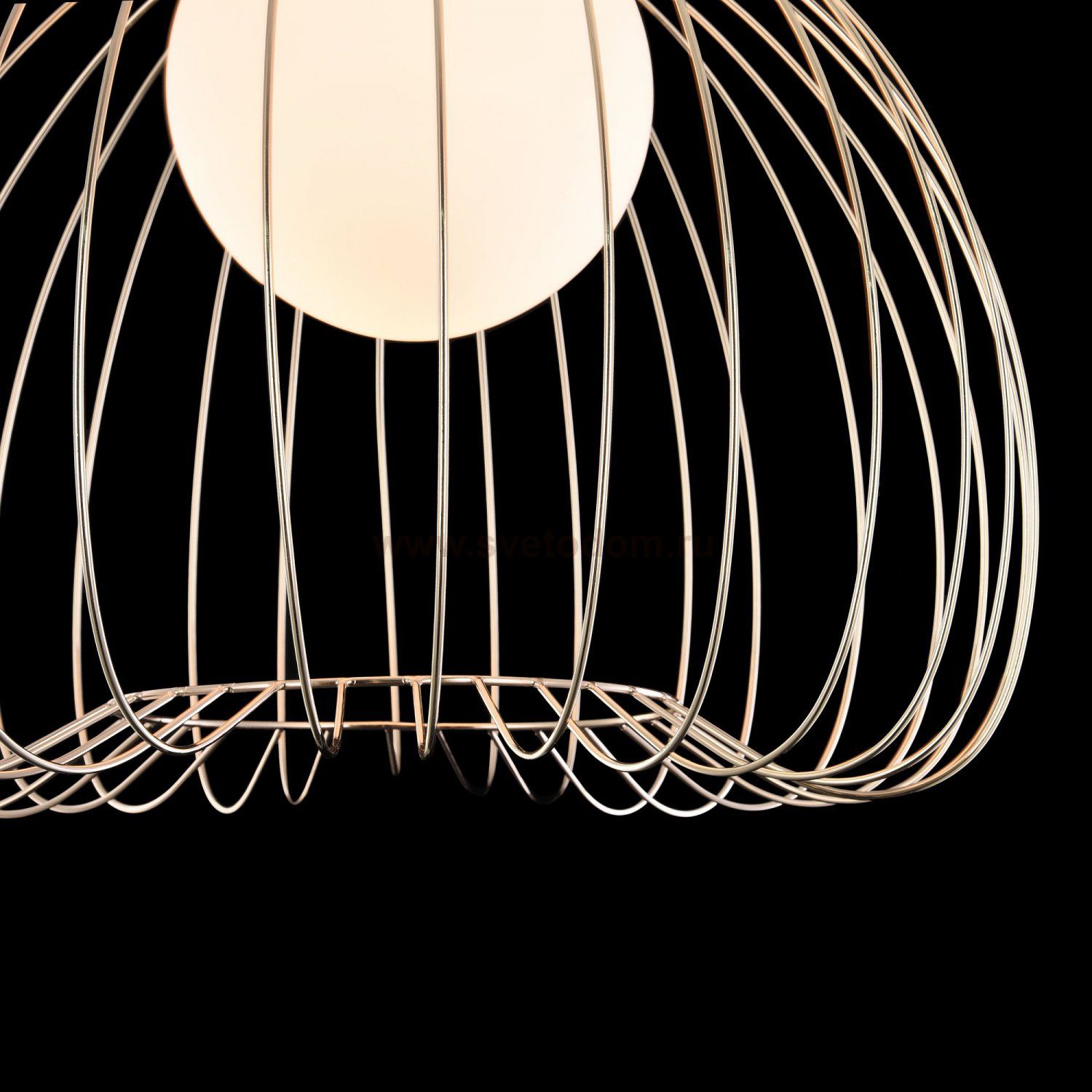 Каркас из металлических прутьев. Декоративный плафон из белого матового стекла. Комментарий