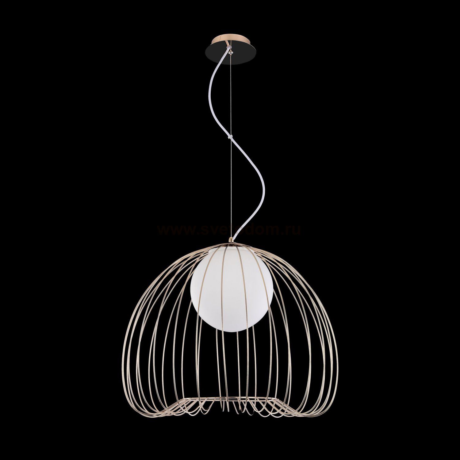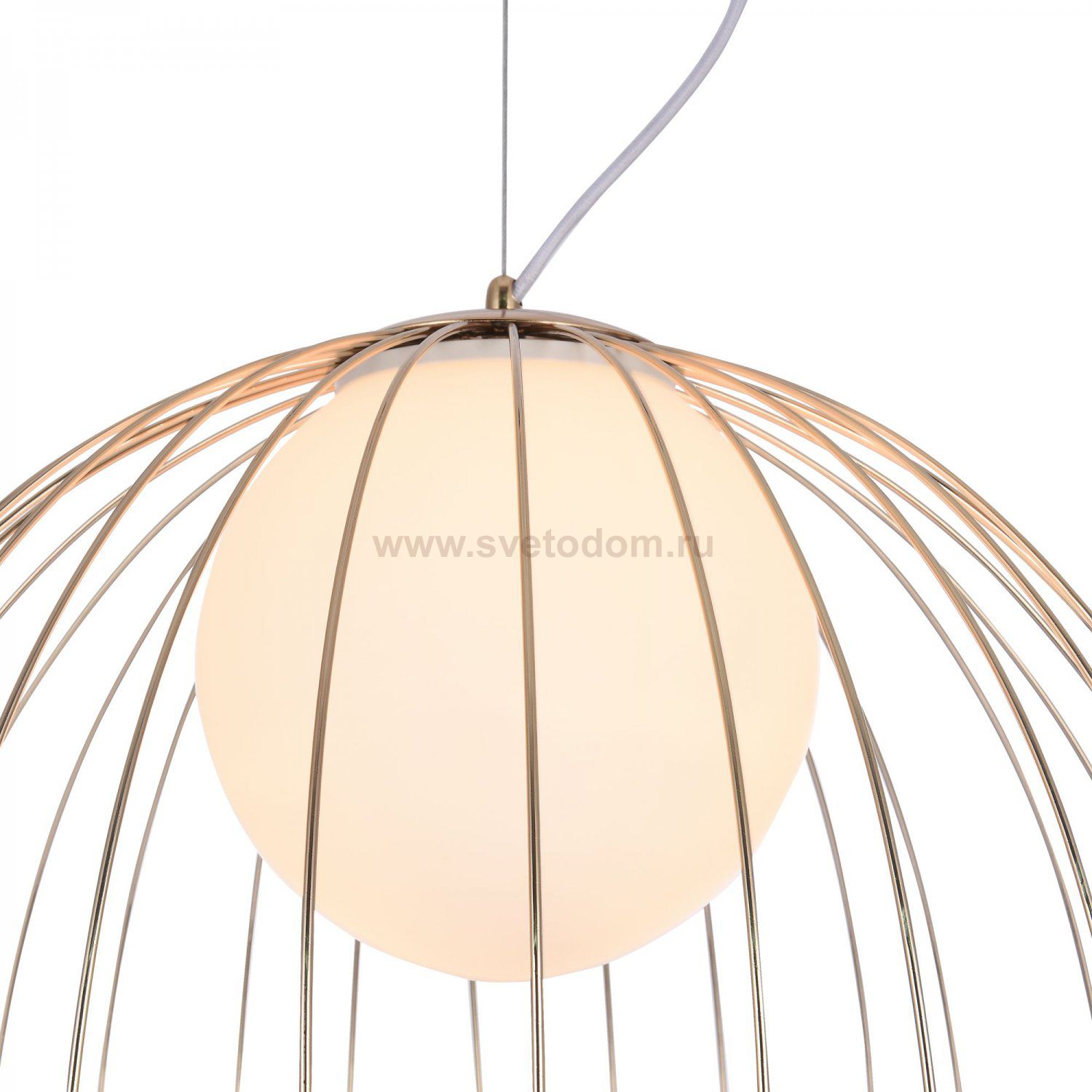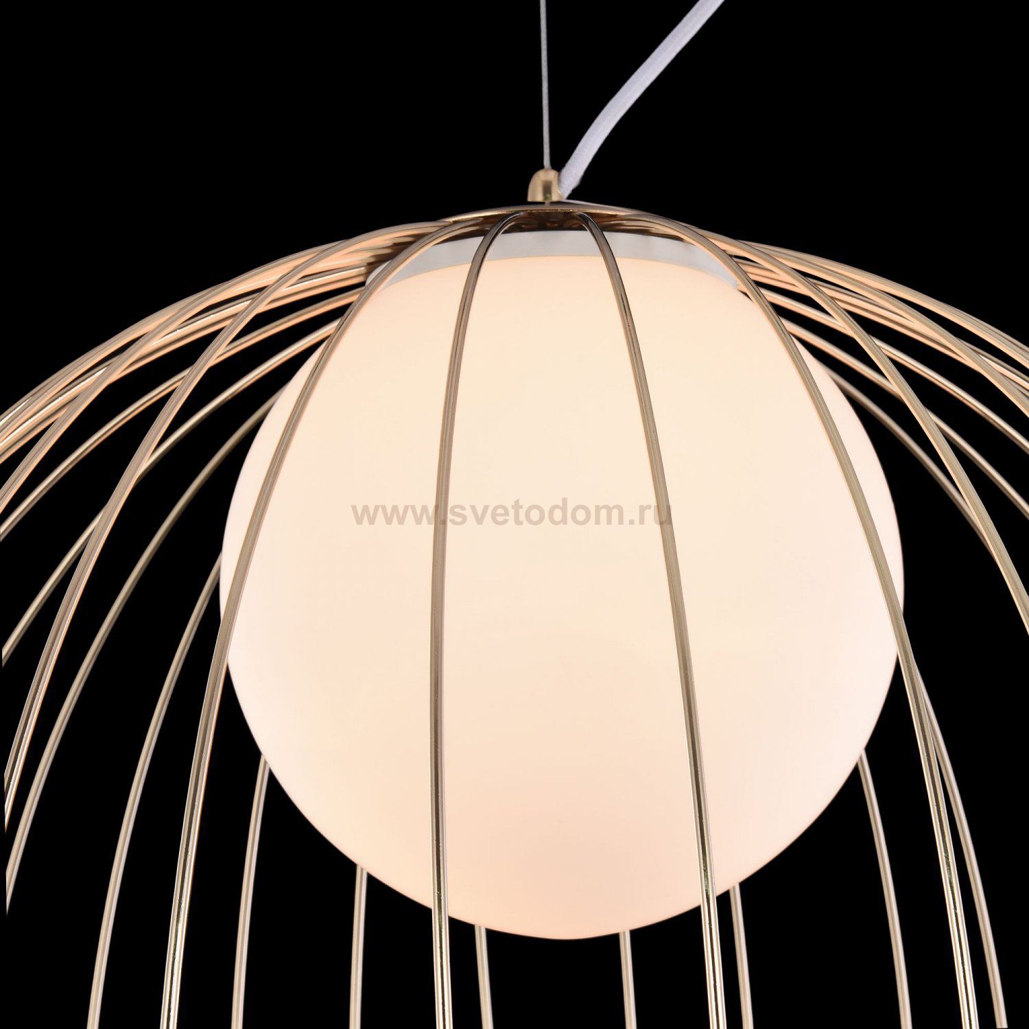 Каркас из металлических прутьев. Декоративный плафон из белого матового стекла. Комментарий