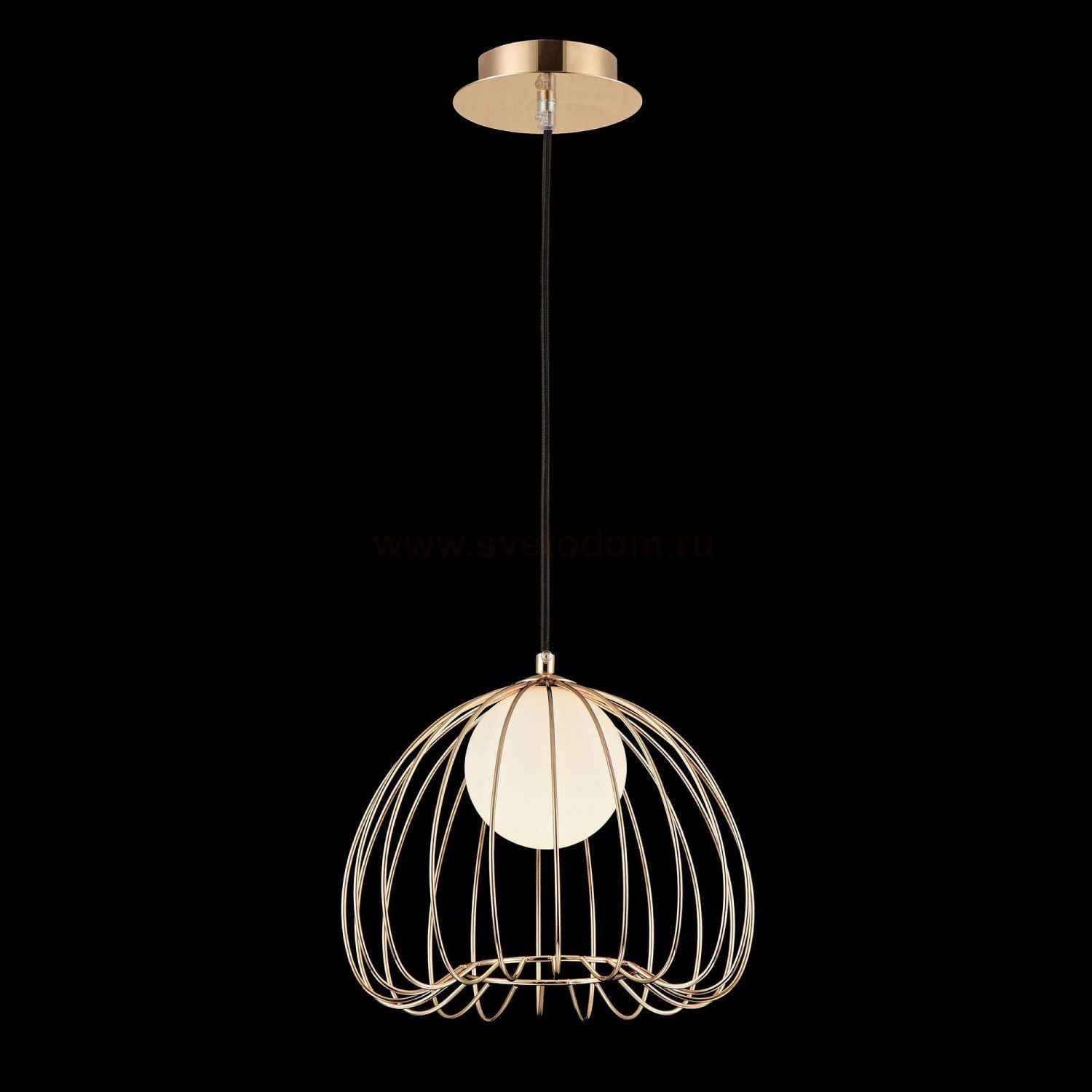 Каркас из металлических прутьев. Декоративный плафон из белого матового стекла. Комментарий