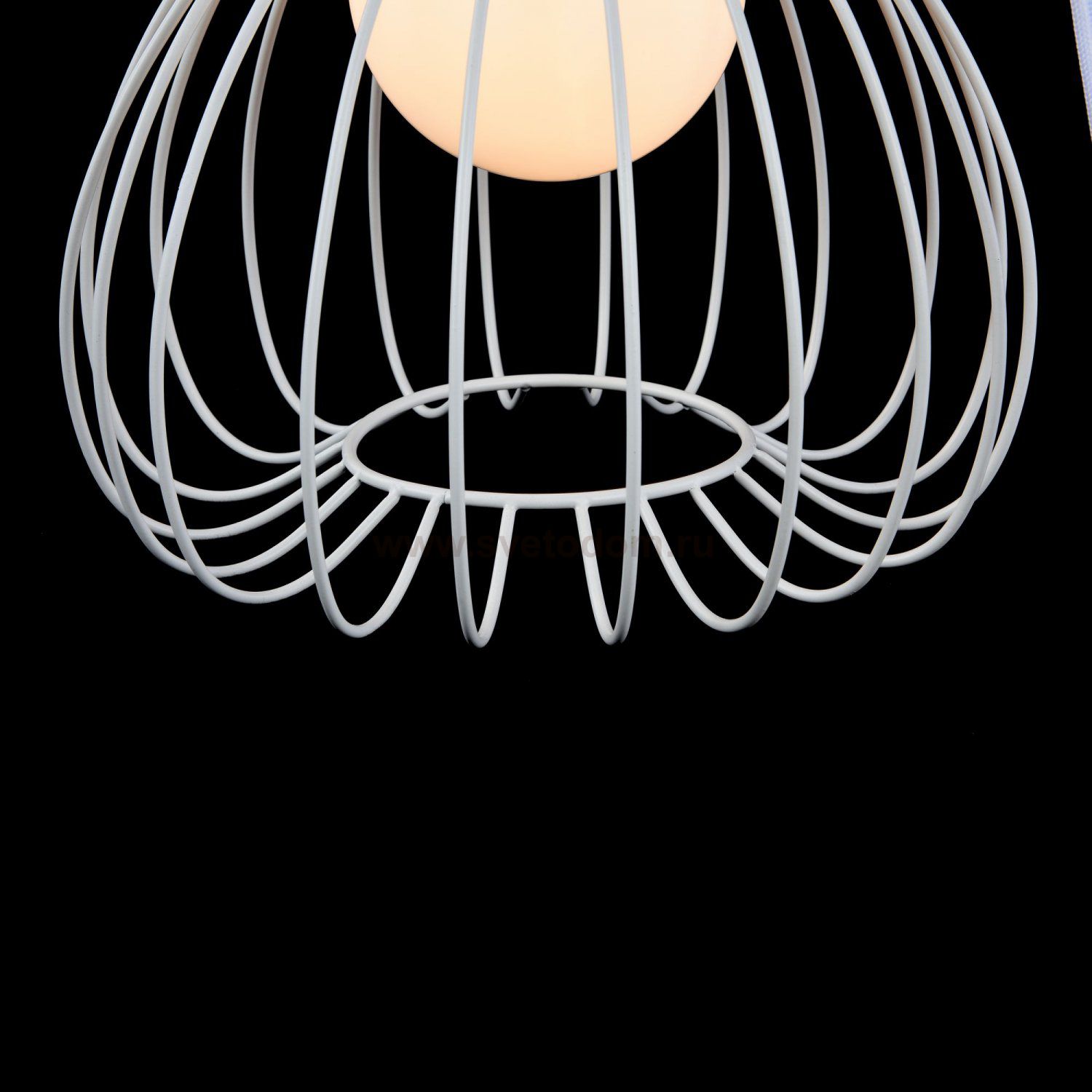 Особенности модели MOD542TL-01W: Каркас из металлических прутьев. Декоративный плафон из белого матового стекла.