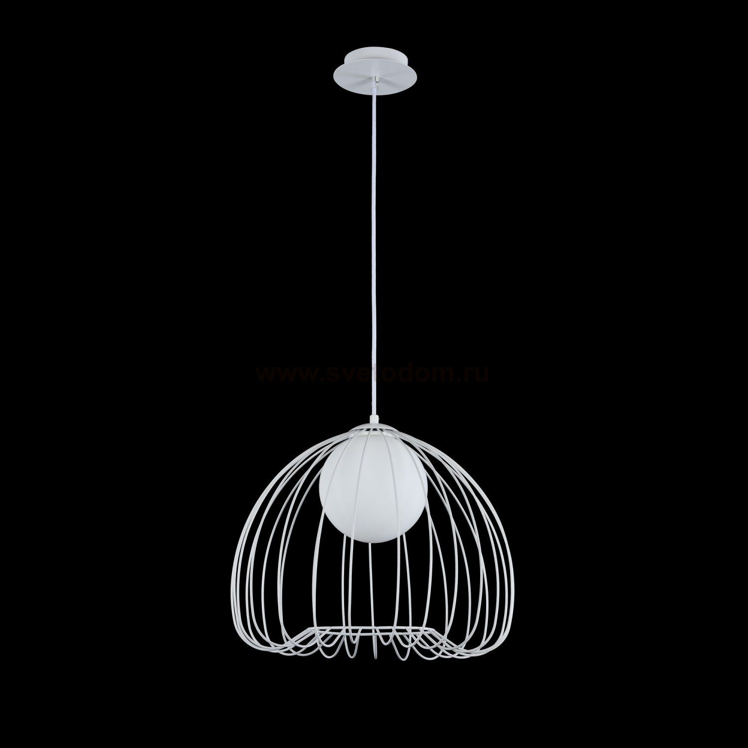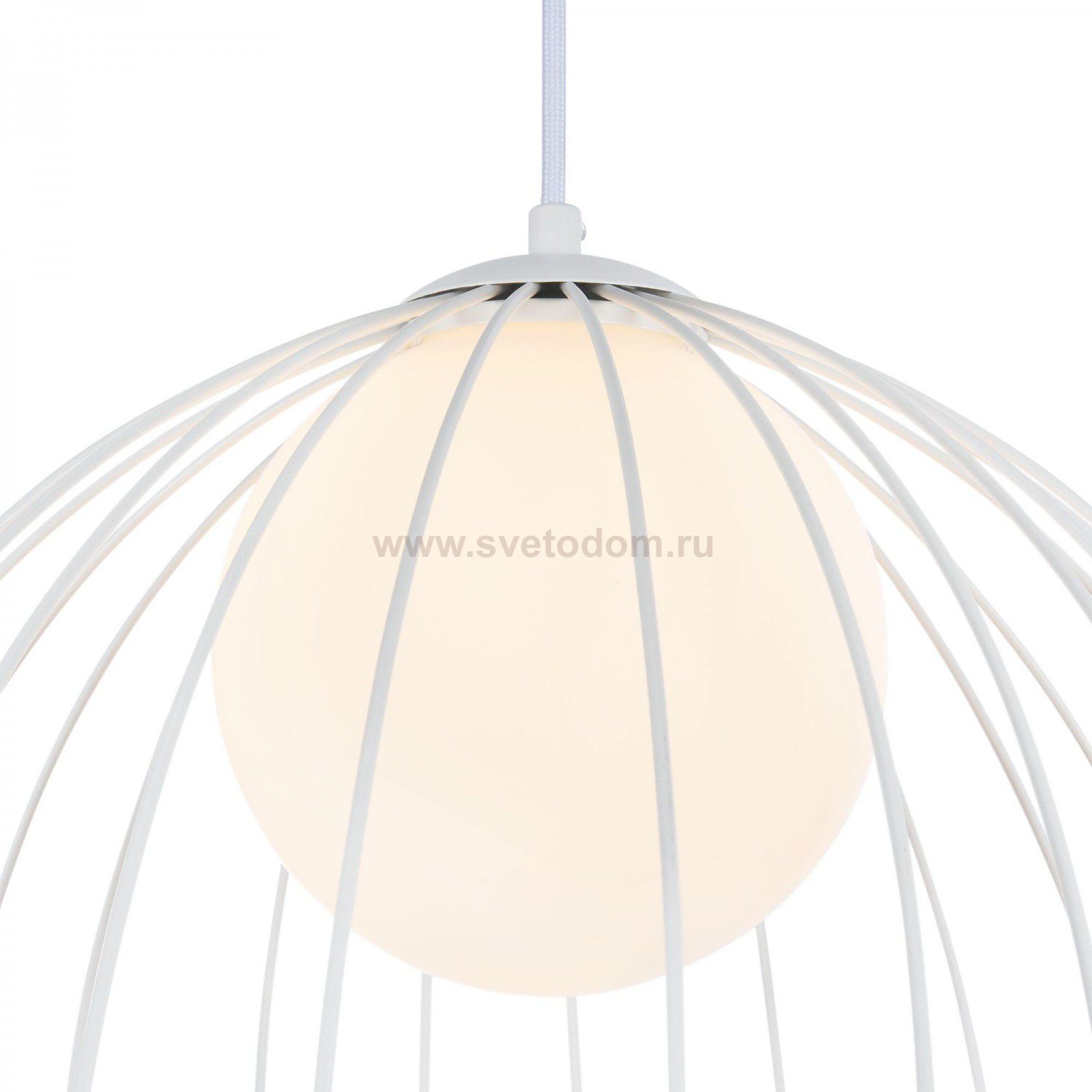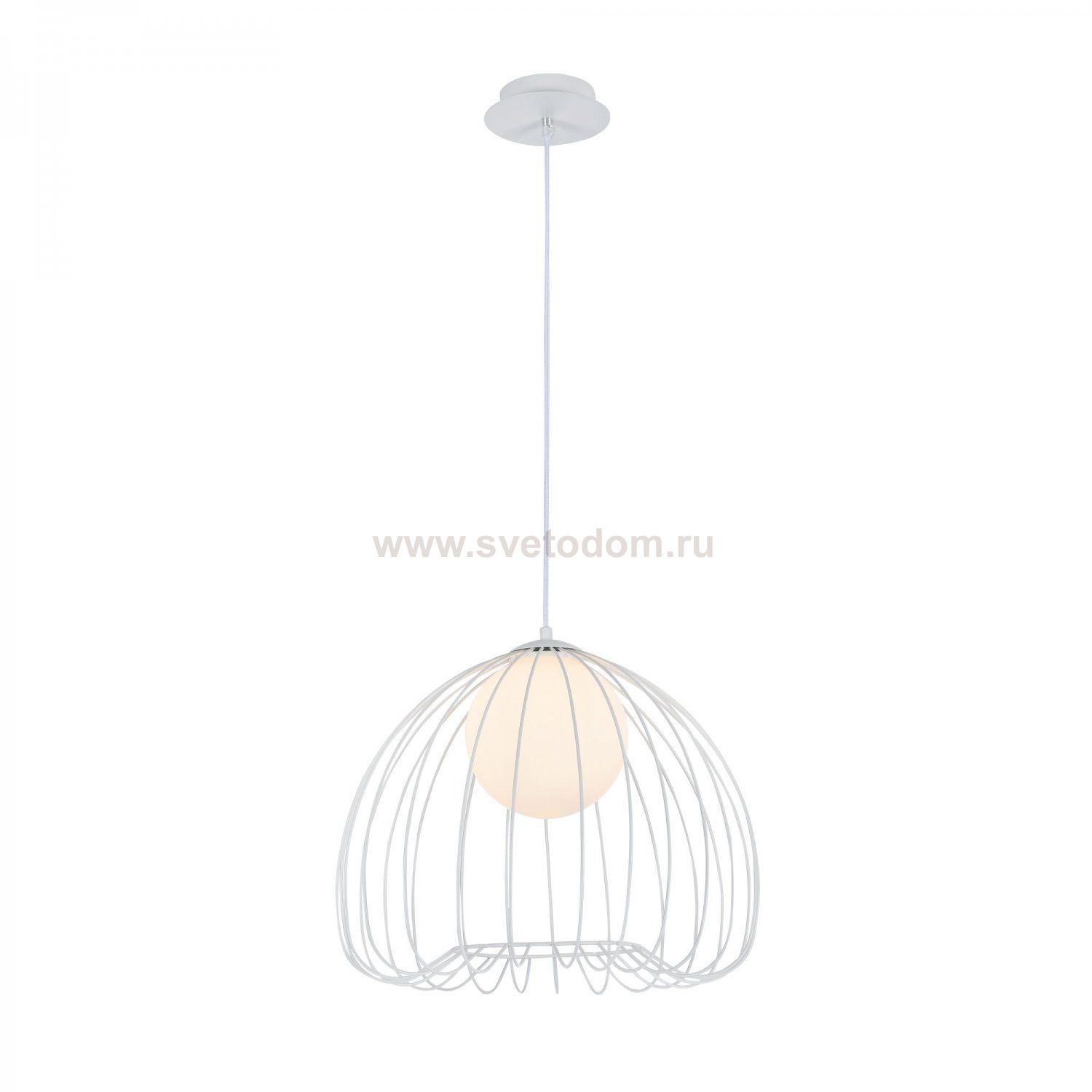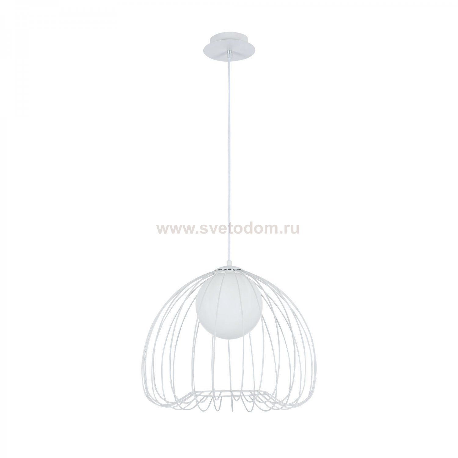 Каркас из металлических прутьев. Декоративный плафон из белого матового стекла. Комментарий