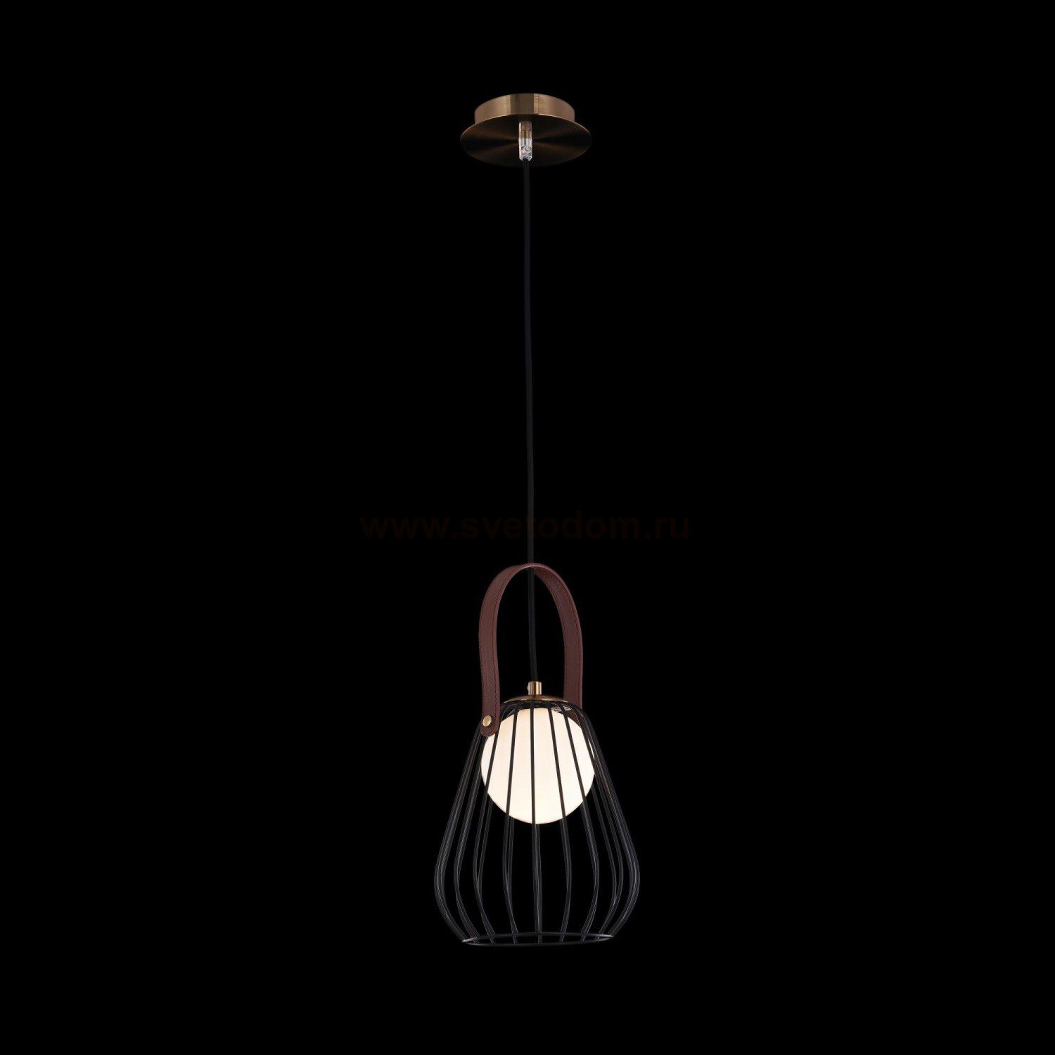 Каркас из металлических прутьев. Дополнен элементом в виде кожаного ремешка. Декоративный плафон из белого матового стекла. Комментарий