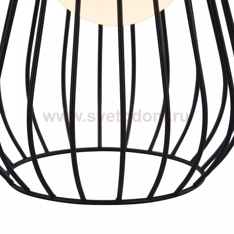 Каркас из металлических прутьев. Дополнен элементом в виде кожаного ремешка. Декоративный плафон из белого матового стекла. Комментарий