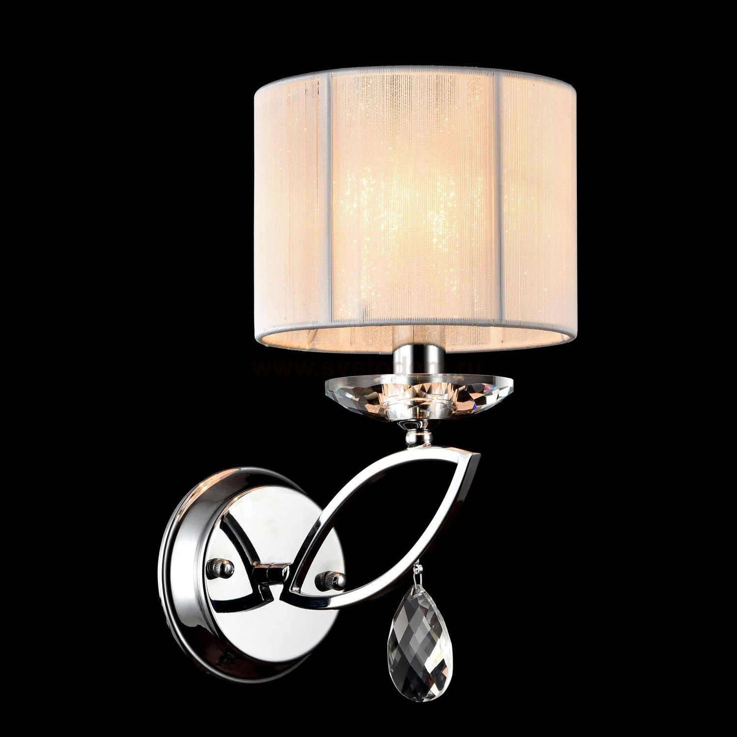 Арматура из металла. Абажур из ПВХ покрыт нитями белого цвета. Подвески из *хрусталя. Дополнительно