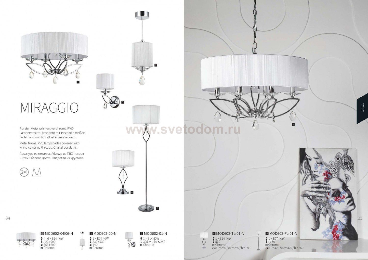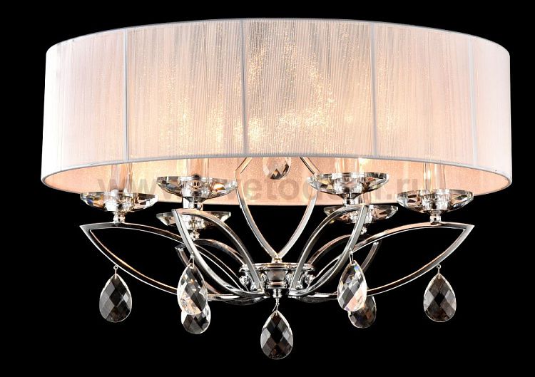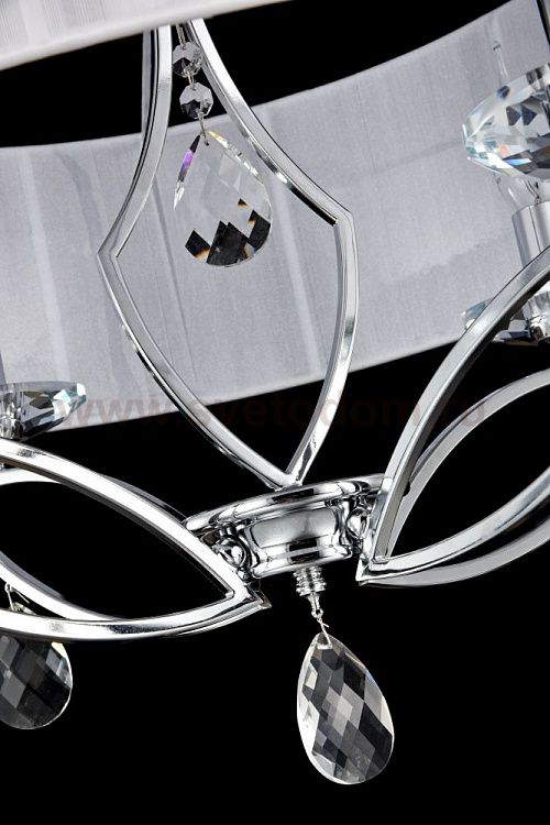 Особенности модели MOD602-04-N: Абажуры светильников серии Miraggio сделаны из множества тканевых нитей белого цвета. Арматура изготовлена из хромированного металла. Светильники украшены подвесками и декоративными блюдцами из граненых кристаллов. Универсальное крепление "2 в 1" позволяет монтировать люстры с использованием цепи или без нее. Высоту подвесных светильников возможно регулировать длиной провода.