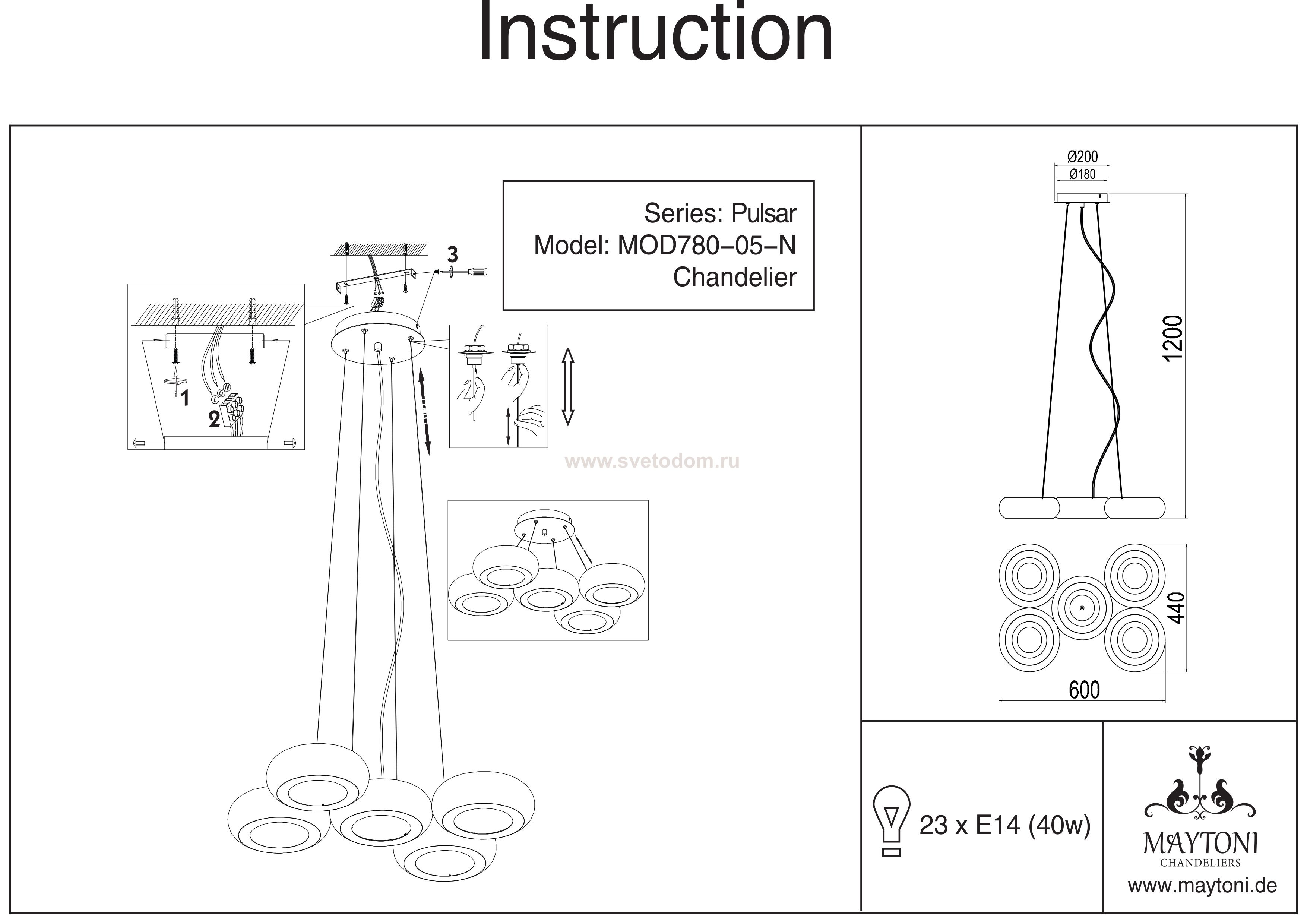 Светильник Maytoni MOD780-05-N Pulsar на протяжении многих лет притягивает к себе искушенных дизайнеров и клиентов, обустраивающих квартиру или загородный дом, а также офисные или общественные места. Благодаря эстетической тонкости и технической проработанности германская модель MOD780-05-N популярна в онлайн продажах на сайте и в наших "земных" магазинах сети Светодом.