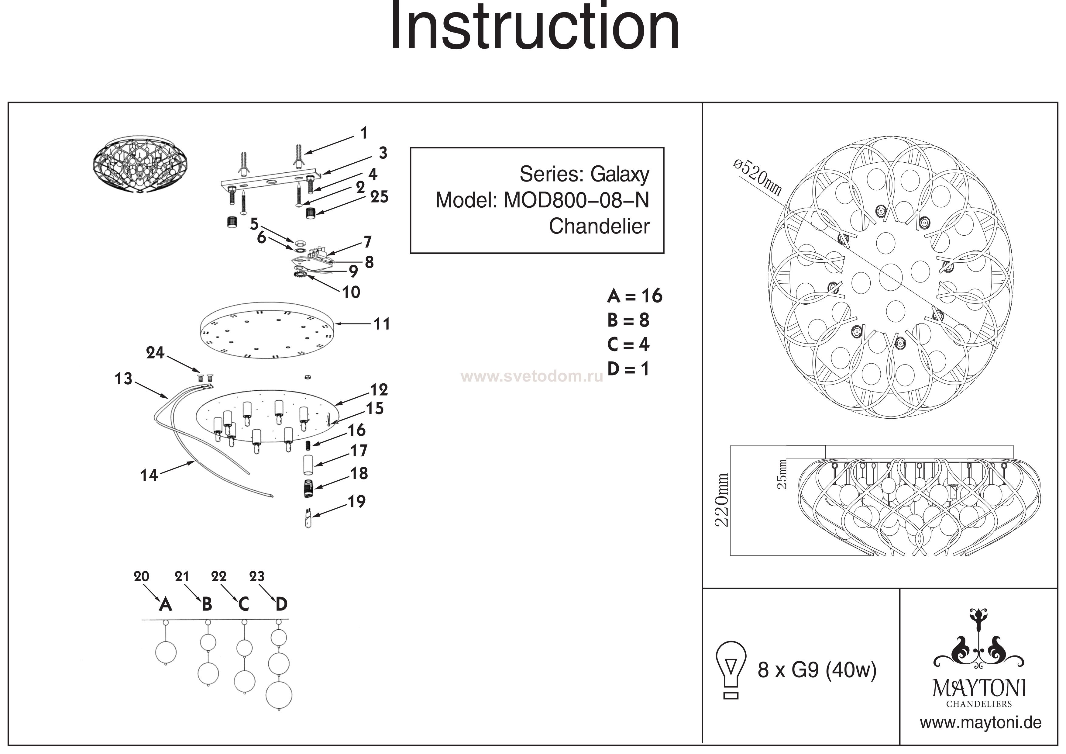 Стиль Хай-тек люстры MOD800-08-N, серия Galaxy дополнит помещение искусственным светом. Создан светильник дизайнерами немецкой компании Maytoni . Отличный выбор для комнаты подростка, кафе, гостиницы. Люстра высотой 220 мм. отличный вариант для низких потолков. Цвет арматуры серебристый, шары выполнены из стекла и покрыты хромовым напылением под цвет арматуры. Светильник от Майтони — это качественное устройство от мирового бренда по справедливой стоимости. Производитель Maytoni рекомендует использовать для устройства 8 галогеновых ламп с цоколем G9. Освещает светильник 12 м2. Осветительный прибор произведен с использованием материала: арматура из металла, декоративные шары из стекла. Для покупки устройства просто нажмите кнопку «добавить в корзину» или свяжитесь с нашими менеджерами по указанным на сайте номерам. Мы доставляем заказы по Москве, Екатеринбургу и другим российским городам. |