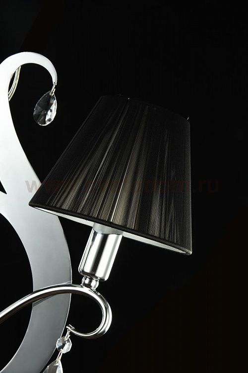 Арматура из металла. Абажур из ПВХ покрыт нитями черного цвета. Подвески прозрачного и черного цвета. Дополнительно