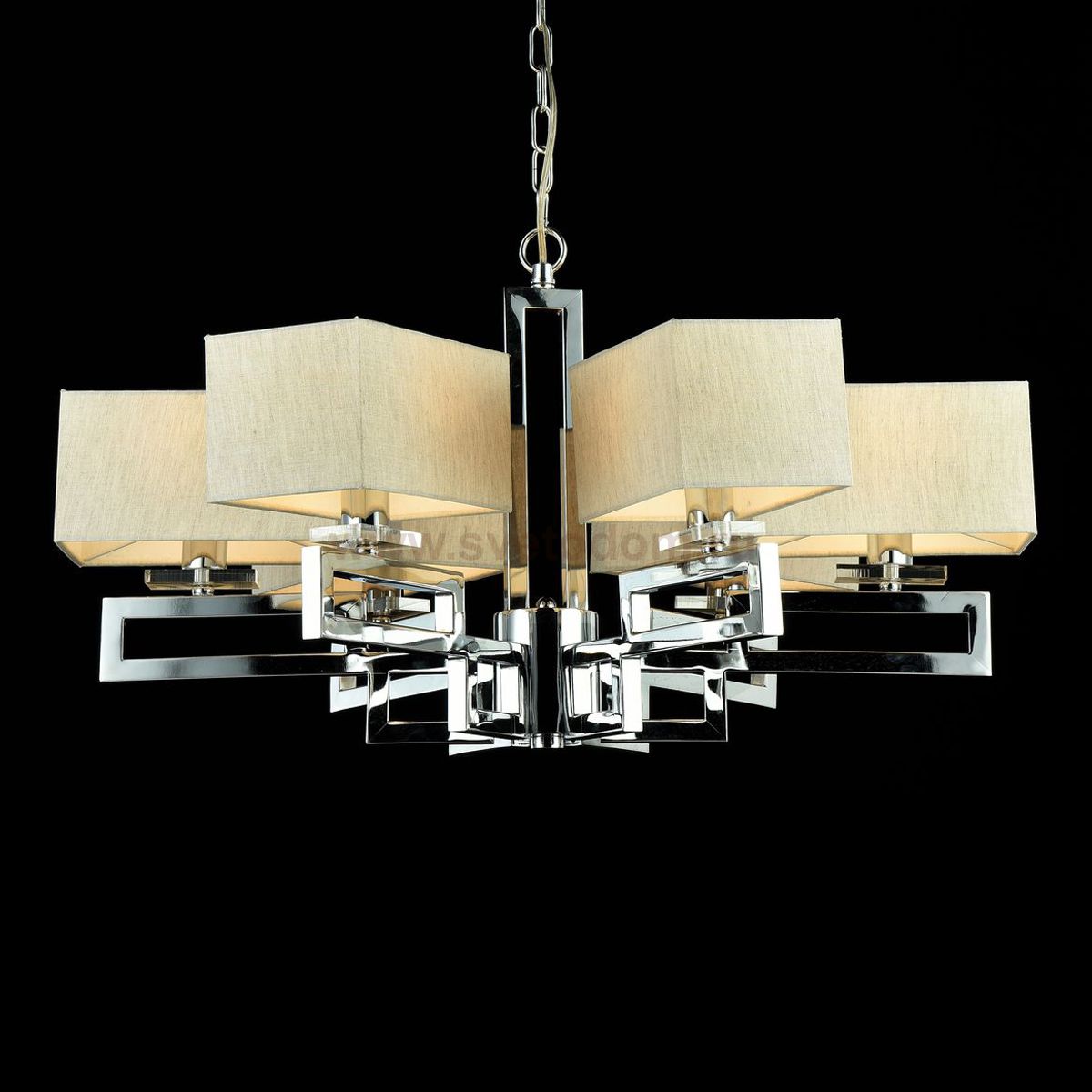 Особенности модели MOD906-06-N: Строгие прямые линии в сочетании с хромированной арматурой из металла формируют строгий облик, который смягчает натуральная текстура абажуров из хлопка на ПВХ. В качестве дополнительного декора служат пластины из прозрачного стекла. Высота люстр регулируется длиной цепи.