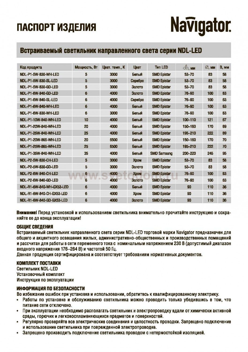 NavigatorТорговая марка Navigator создаёт современное светотехническое оборудование, соответствующее высоким стандартам европейского качества. Все оценят модельный ряд ламп: энергосберегающих, светодиодных, люминесцентных, галогенных. Светильники Navigator имеют компактные и удобные для монтажа габариты, что позволит занимать минимальные площади в пространстве, не отказываясь от яркости и лаконичного декора. Влагозащищённые конструкции станут подходящими для специализированных площадок. Вся товары имеют высококачественные технические характеристики для длительного срока службы. Это дельно, выгодно и практично! Помимо светильников и лампочек ТМ Navigator предлагает элементов питания разных типоразмеров, удлинителей, светодиодных фонарей, прожекторов, комплектующих для электромонтажа. |